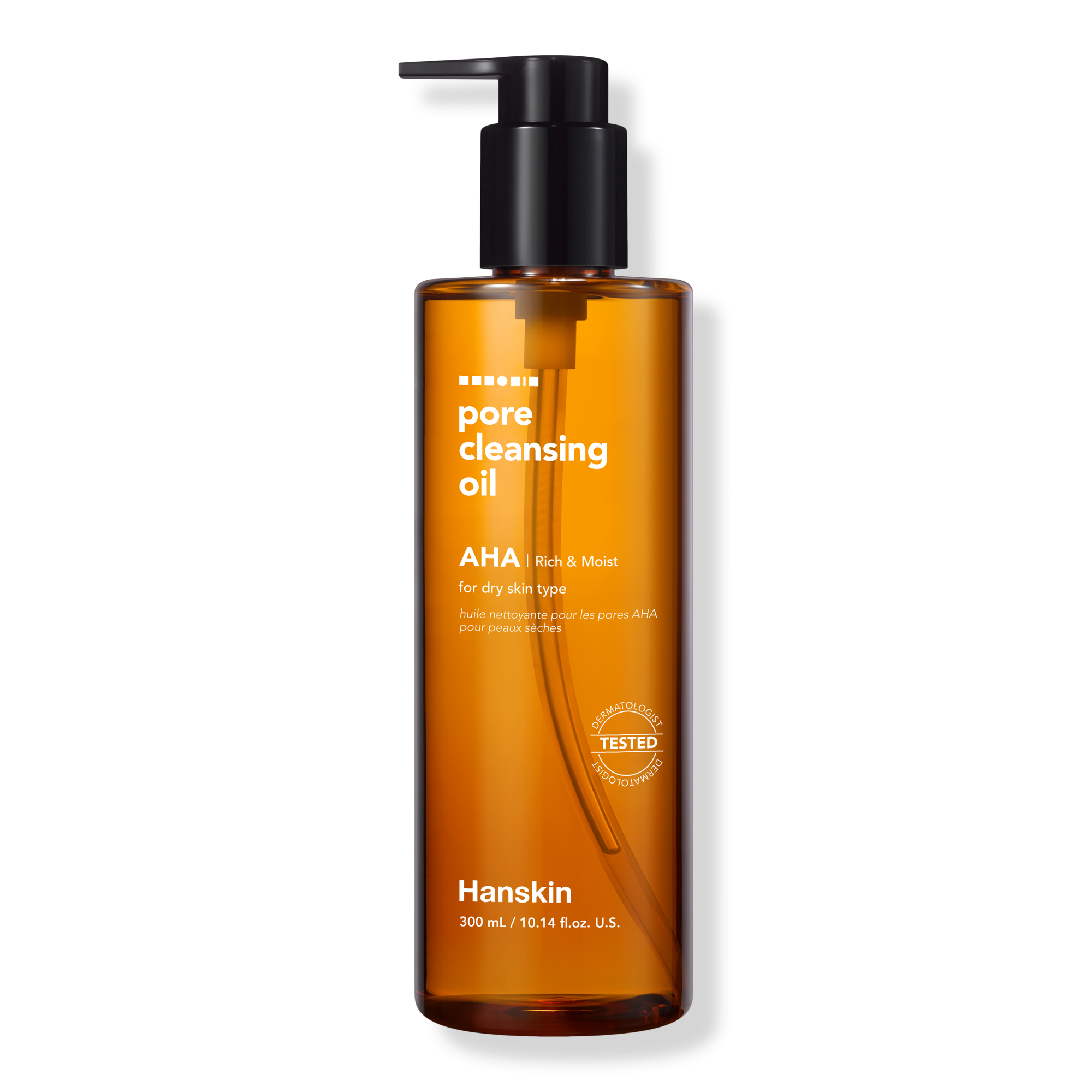 Hanskin's Pore Cleansing Oil AHA is a deep cleansing oil that removes makeup and purifies combination skin in a single step.