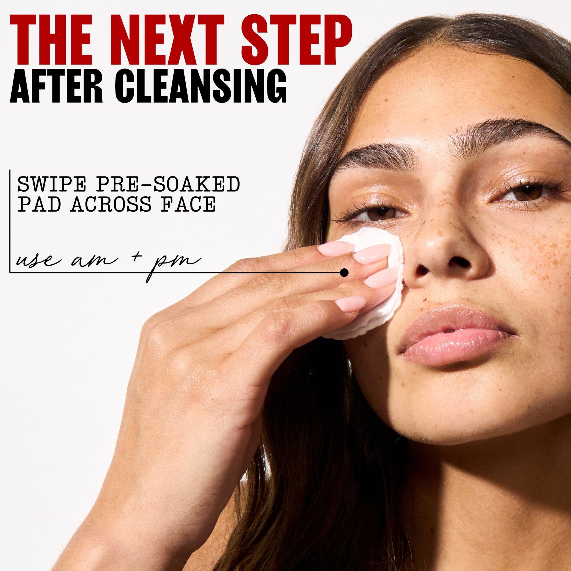 After cleansing, swipe pre-soaked pad across face, morning and night.