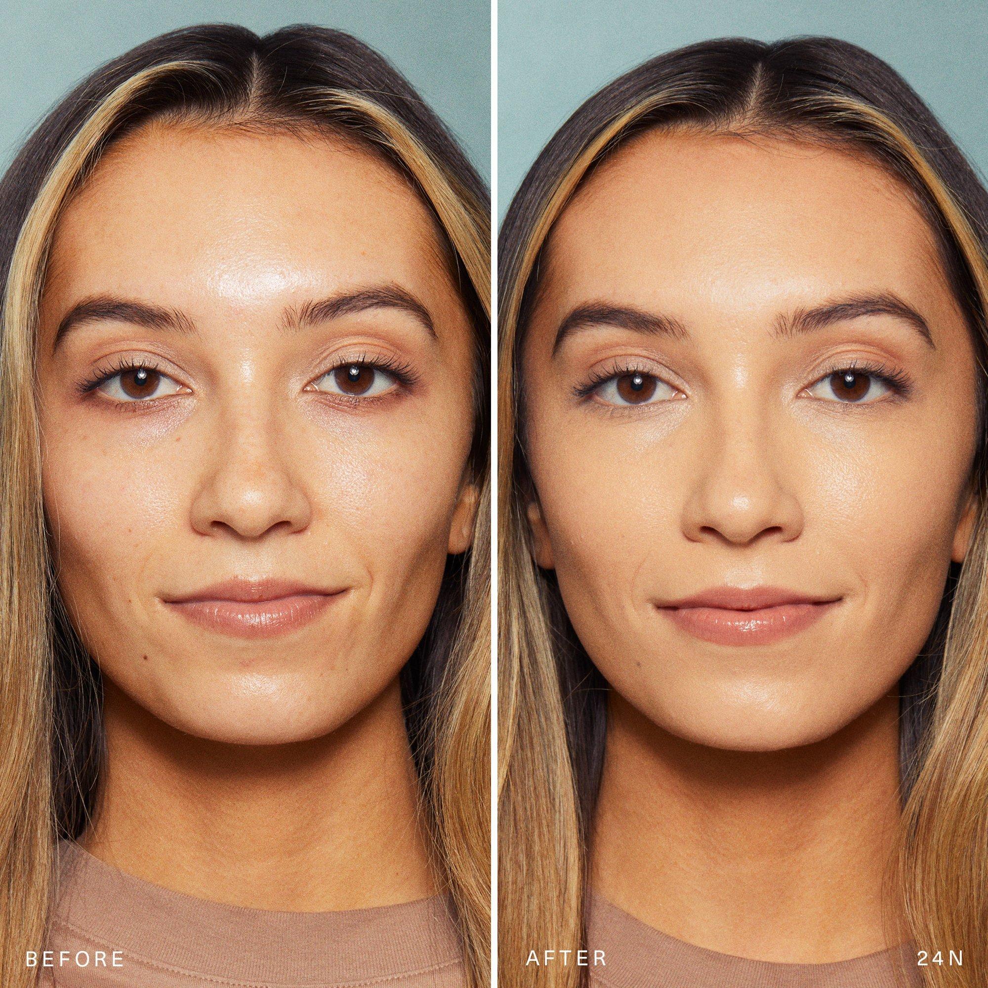 No-makeup makeup in a bottle. Rare Beauty Positive Light Tinted Moisturizer Broad Spectrum SPF 20 Sunscreen goes on easy to instantly blur skin with glowy, light to medium coverage that stays put—all while hydrating and protecting skin from the sun.