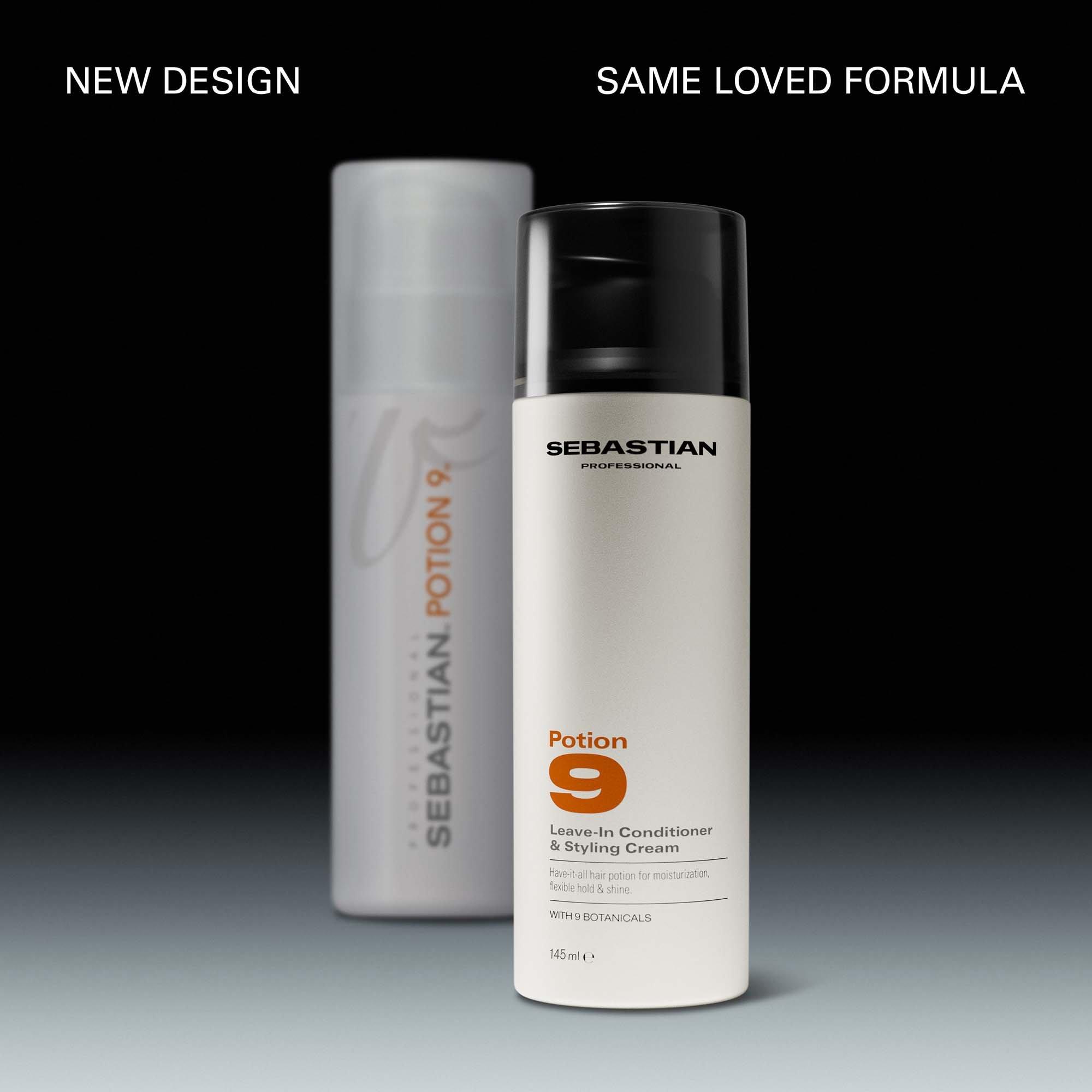 Sebastian Professional Potion 9 Leave-In Conditioner & Styling Cream, the iconic hybrid leave-in and styling cream designed to moisturize and shape hair. Delivers flexible hold, shine, and soft movement- ideal for cocktailing or creating custom styles. Formulated with 9 plant botanicals.