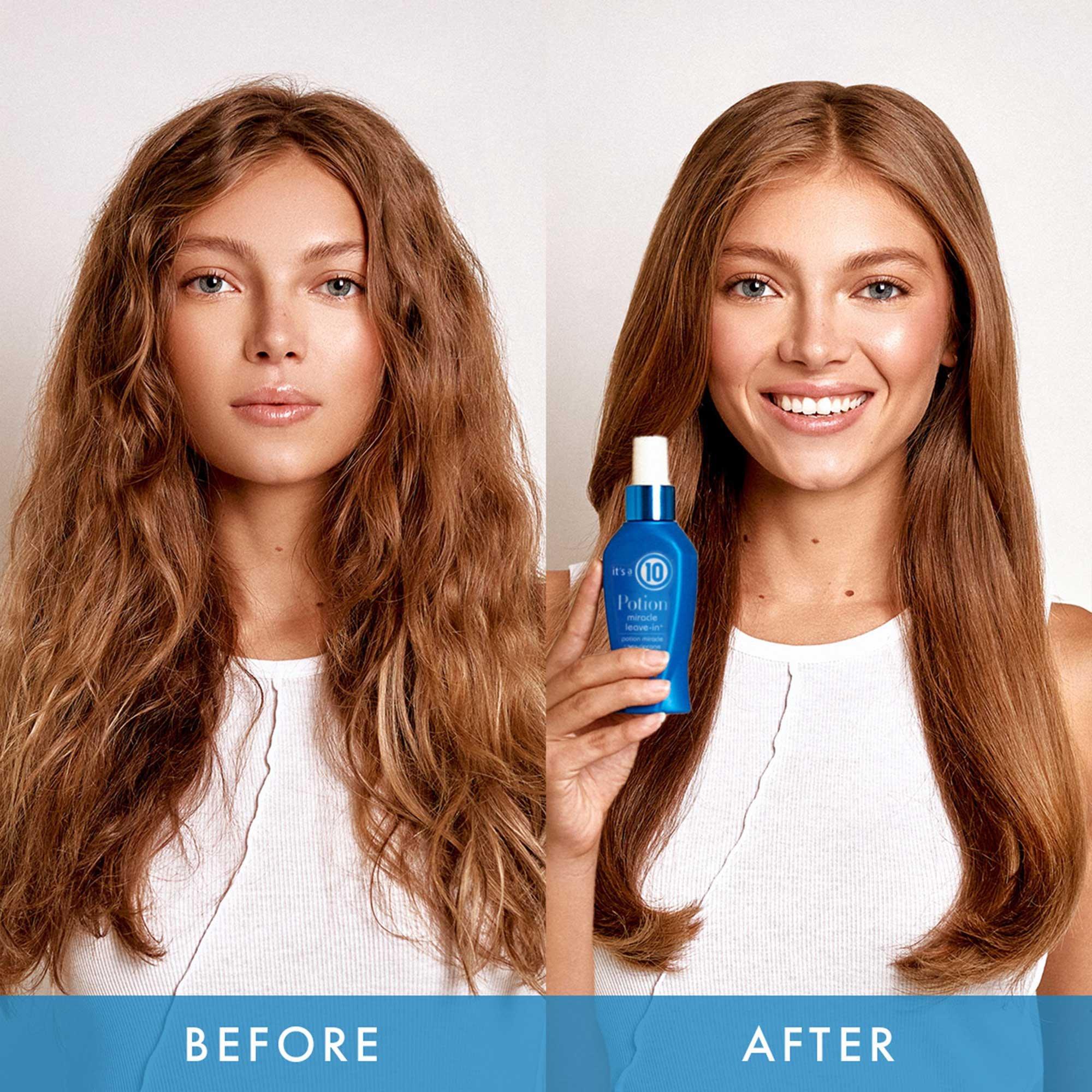 It's A 10's popular leave-in is now enhanced with an extra dose of moisture in the Potion Miracle Leave-in with 10 Benefits. With just a few sprays, this conditioning mist helps provide all-day moisturizing action. It works great as a pre-treatment for heat styling as well.