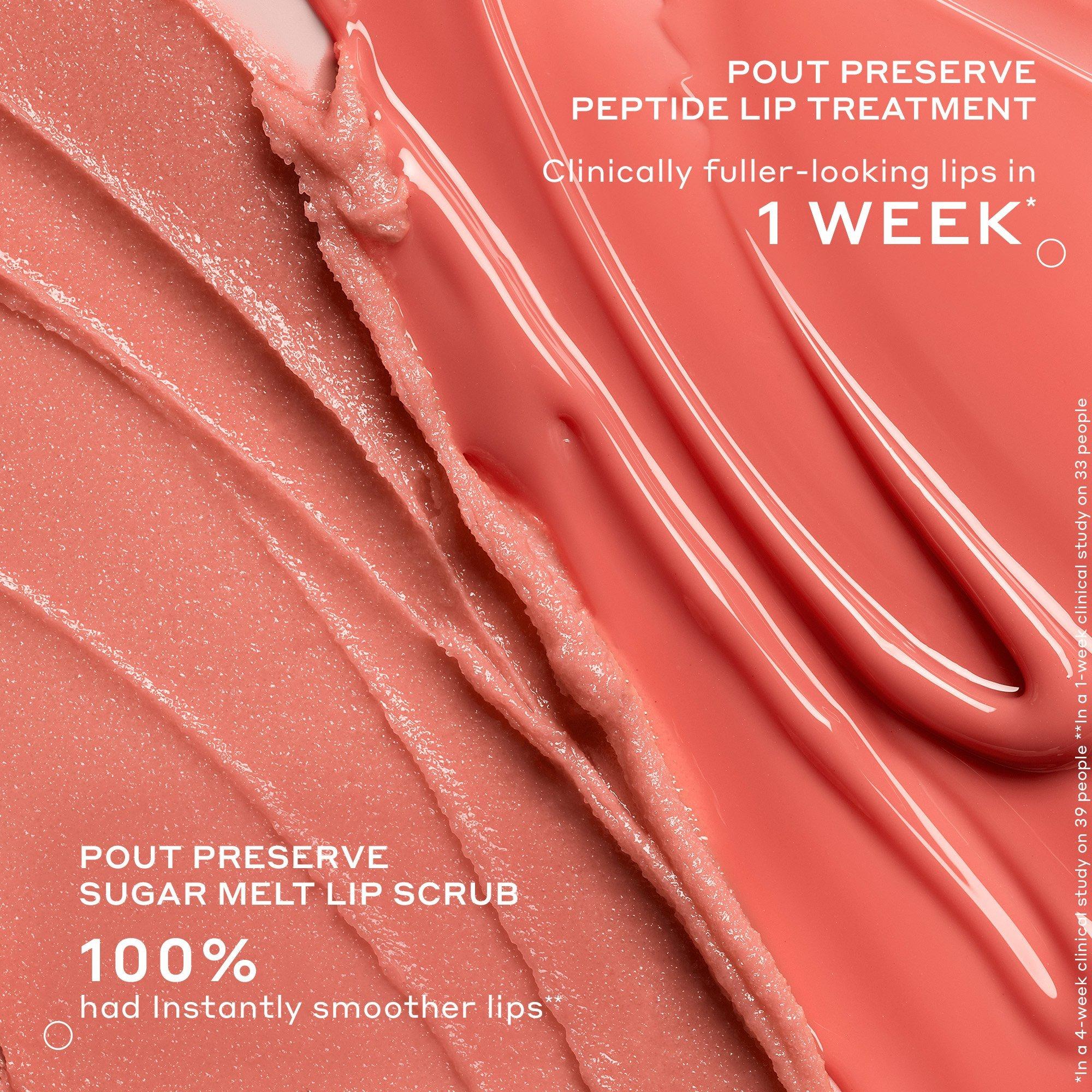 The OLEHENRIKSEN Pout Preserve Sugar Melt Lip Scrub is a leave-on lip scrub with fine sugar and kokum butter that gently exfoliates for a soft, smooth and hydrated pout in seconds—no rinse required.