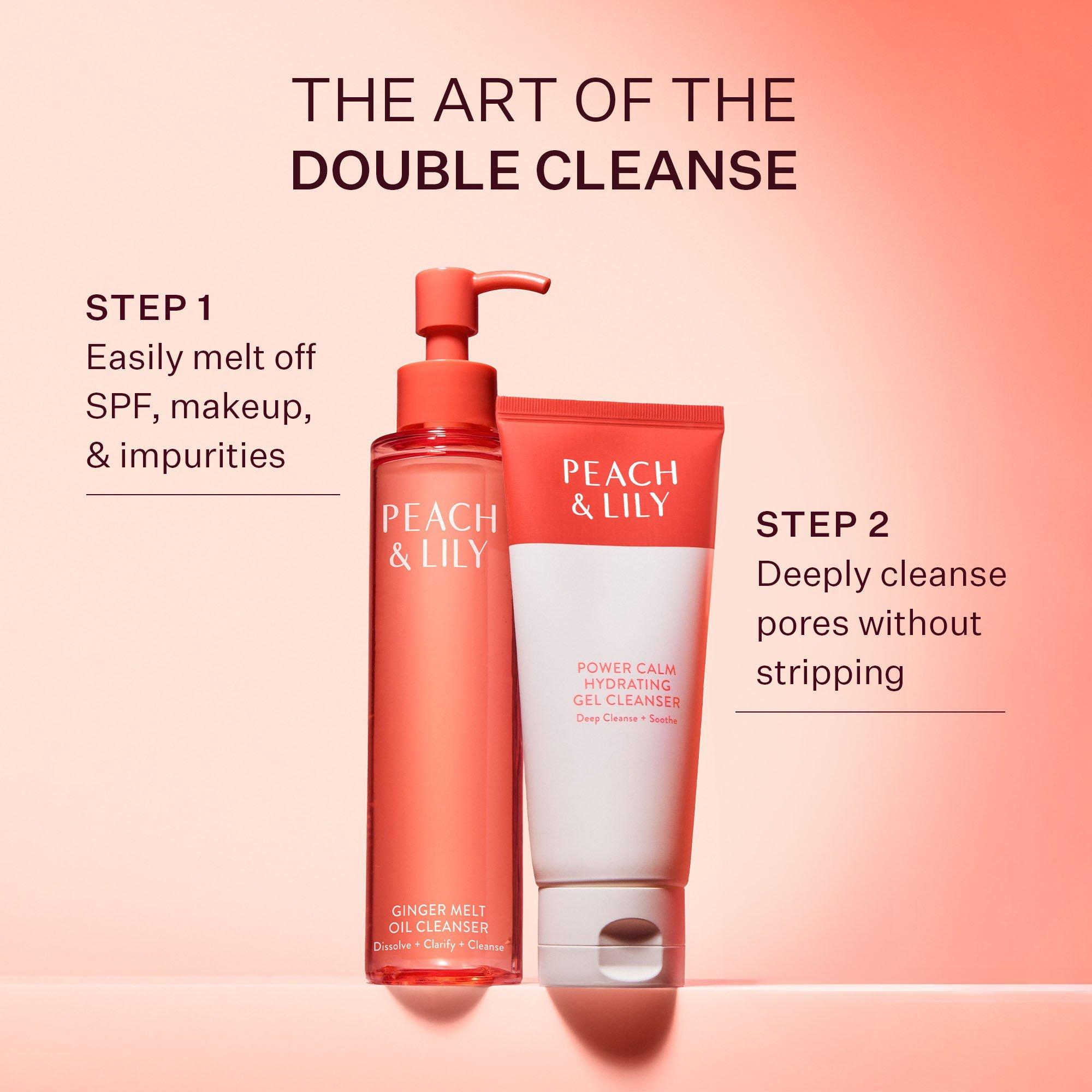 Peach & Lily's Power Calm Hydrating Gel Cleanser deep-cleanses and hydrates, soothes, and respects the skin barrier. A gentle, pH 5.5, sulfate-free formula.
