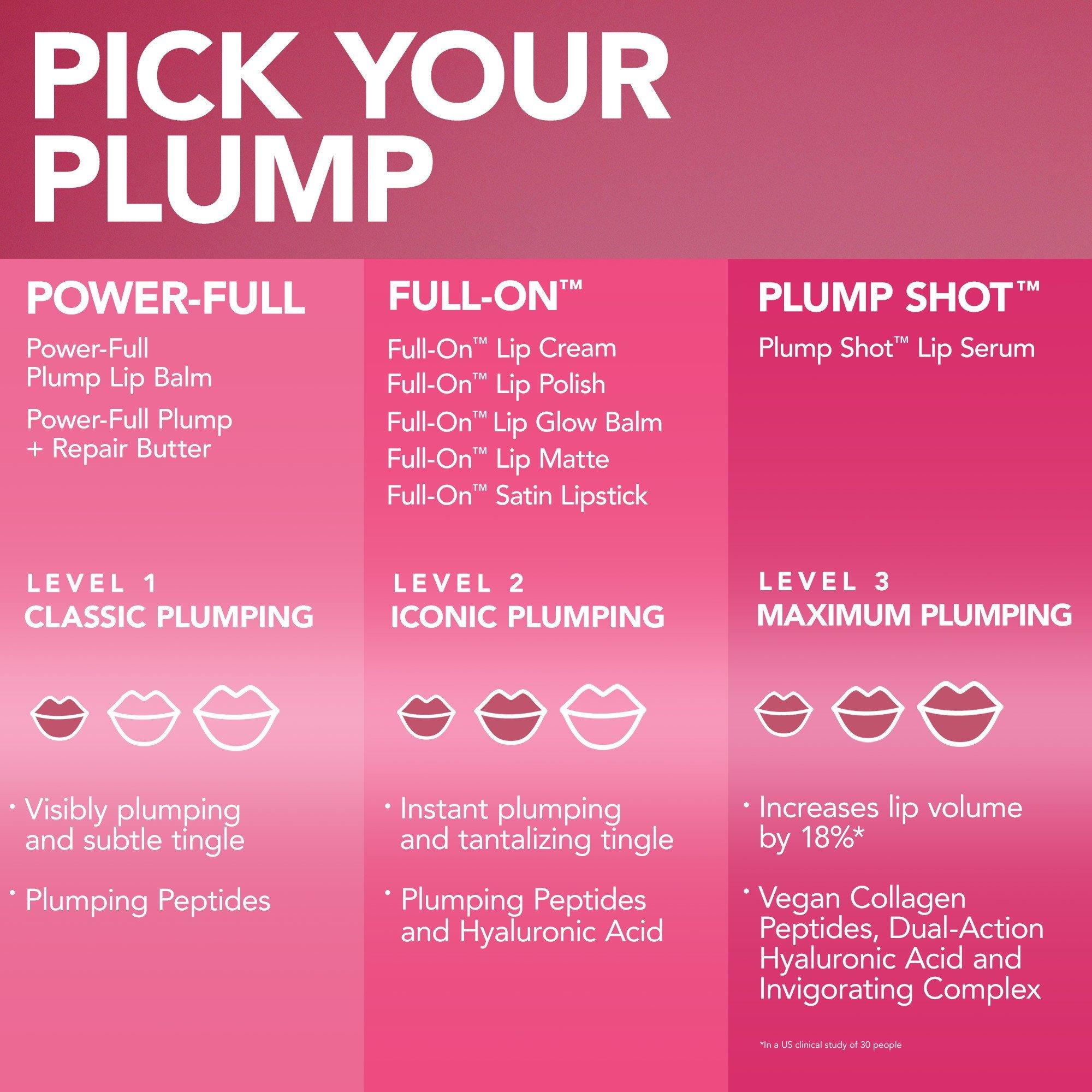• Visibly plumps for fuller-looking lips