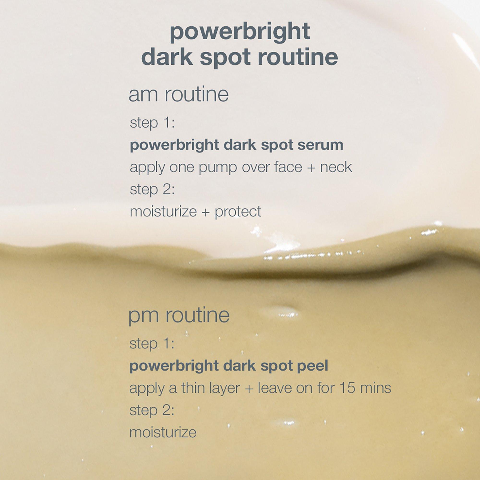Dermalogica's 2-Step PowerBright Dark Spot System pairs a daily dark spot serum + lifting exfoliant to achieve and maintain an even skin tone. The PowerBright Dark Spot Serum helps fade the appearance of uneven pigmentation while PowerBright Dark Spot Peel visibly lifts surface hyperpigmentation.