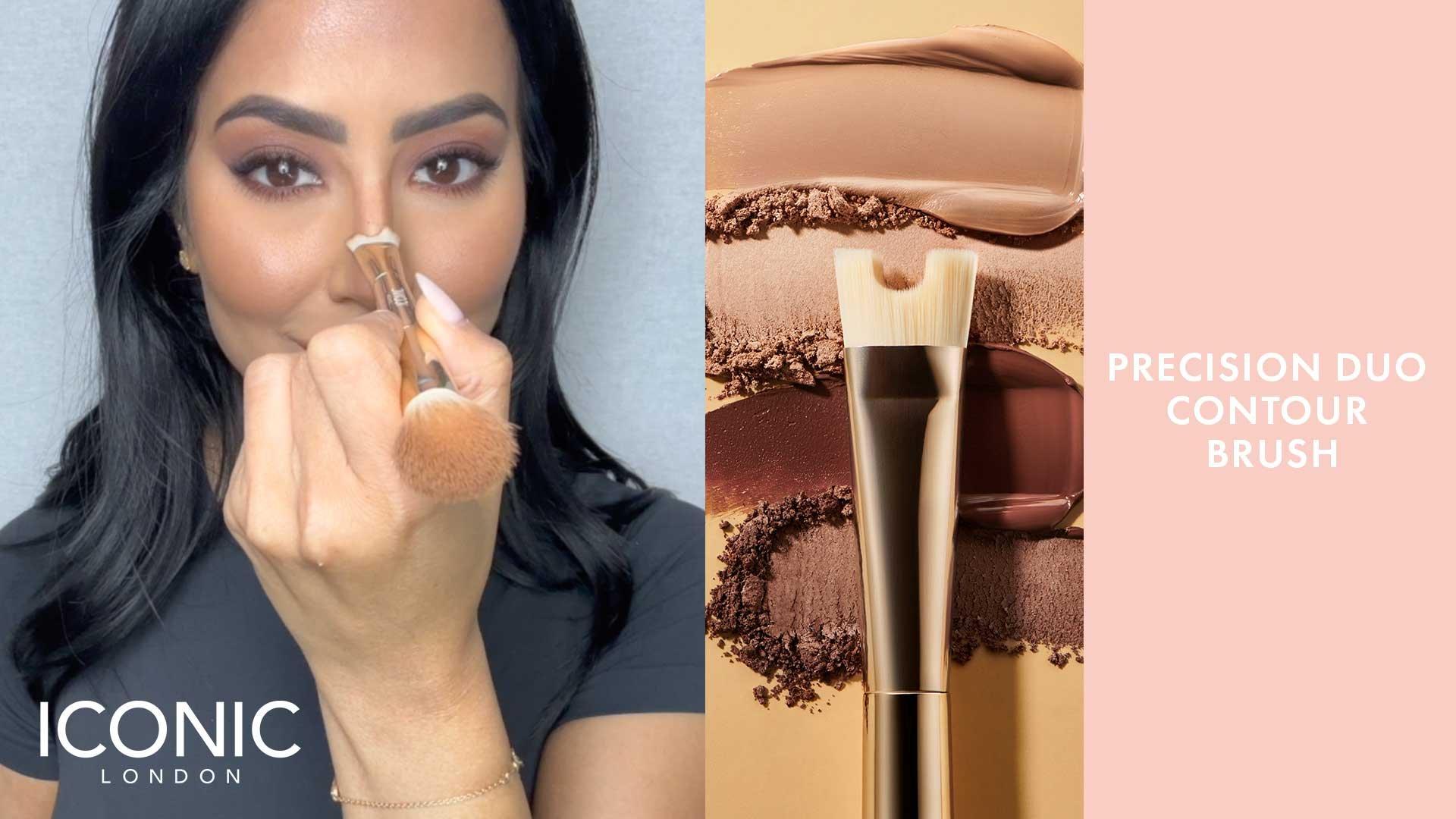 Master the art of contouring with ICONIC London's Precision Duo Contour Brush. The dual-ended brush contains a U-shape for nose contouring and fluffy end for powder. This essential beauty tool is crafted for precision and ease of use, allowing you to blend and sculpt like a pro.