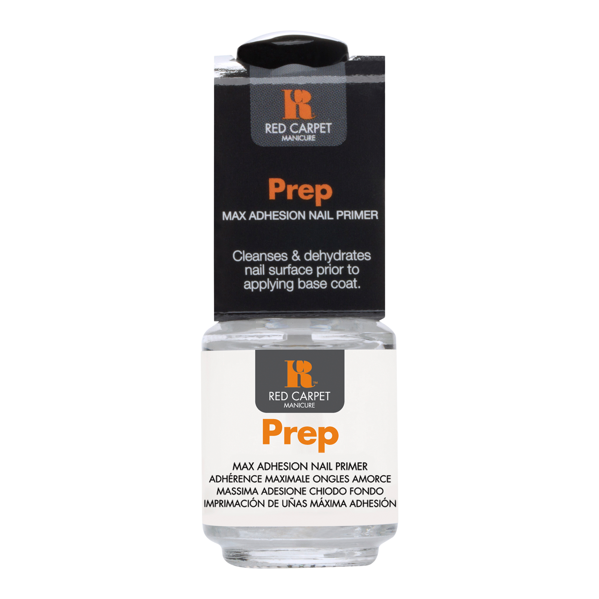 Red Carpet Manicure Prep Max Adhesion Primer & Sanitizer dehydrates the nail plate for maximum product adhesion. Apply after prepping the nail plate and cuticles. After application, allow to air dry and follow with Fortify & Protect Gel Polish Base Coat.