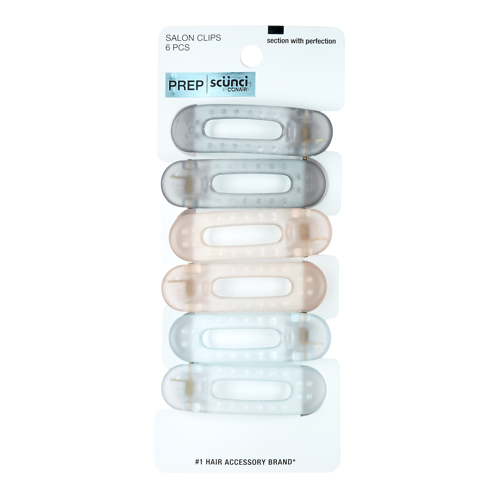 Convert everyday 'dos into sophisticated styles with Scünci Prep Salon Clips. Wear the translucent gray, pink, and blue clips in a stack or as singles.