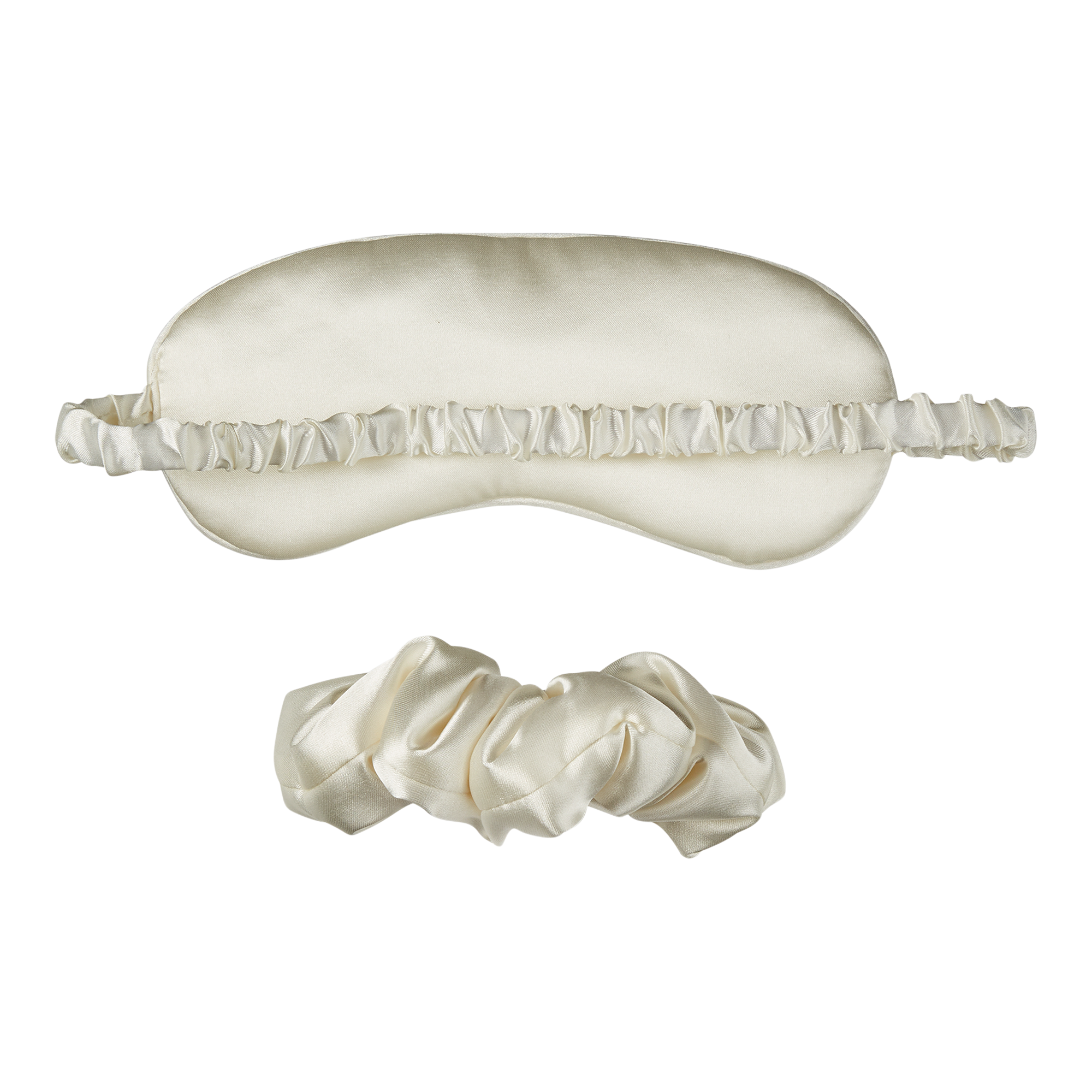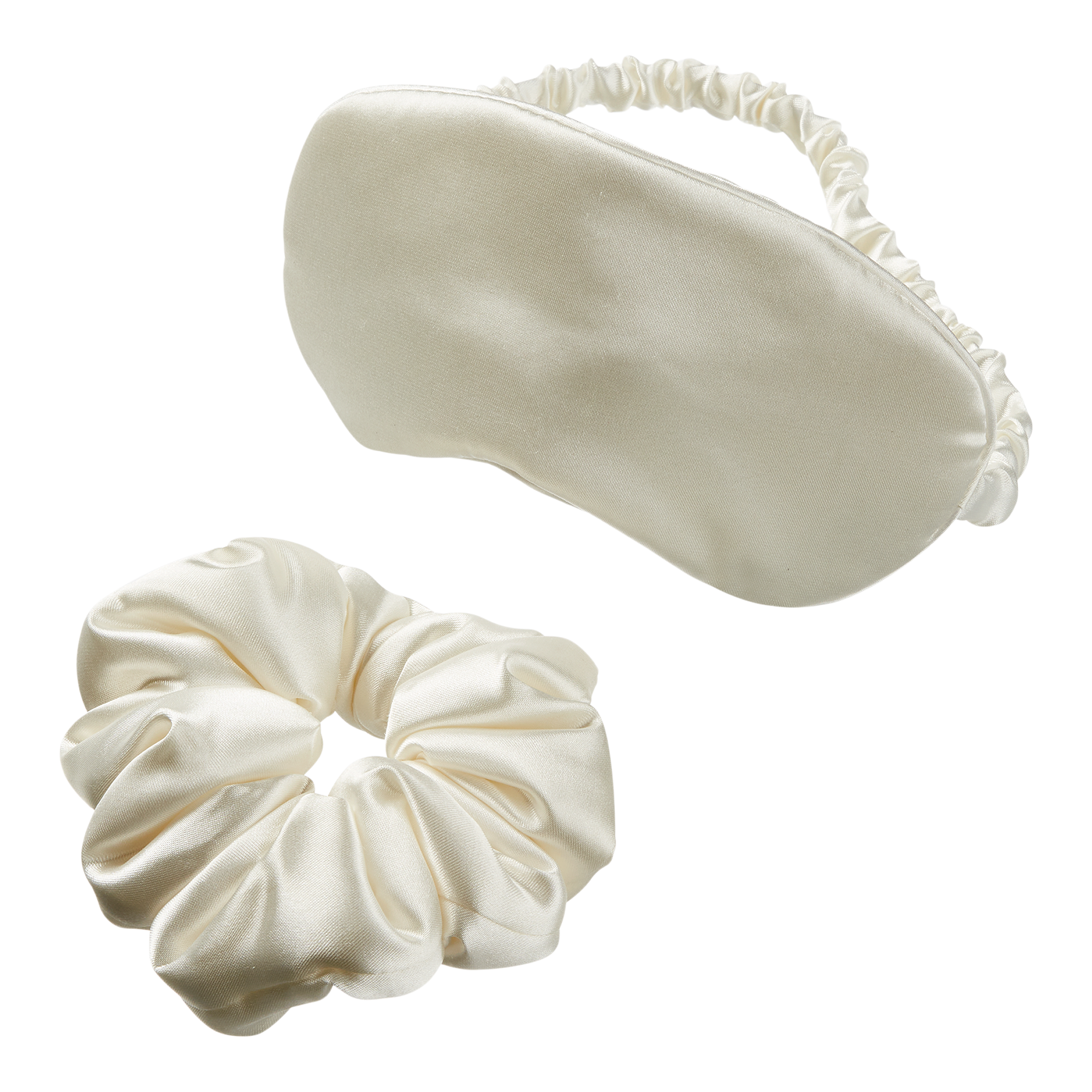 • Matching ivory-colored set with satin sleep mask and pillowy-soft scrunchie