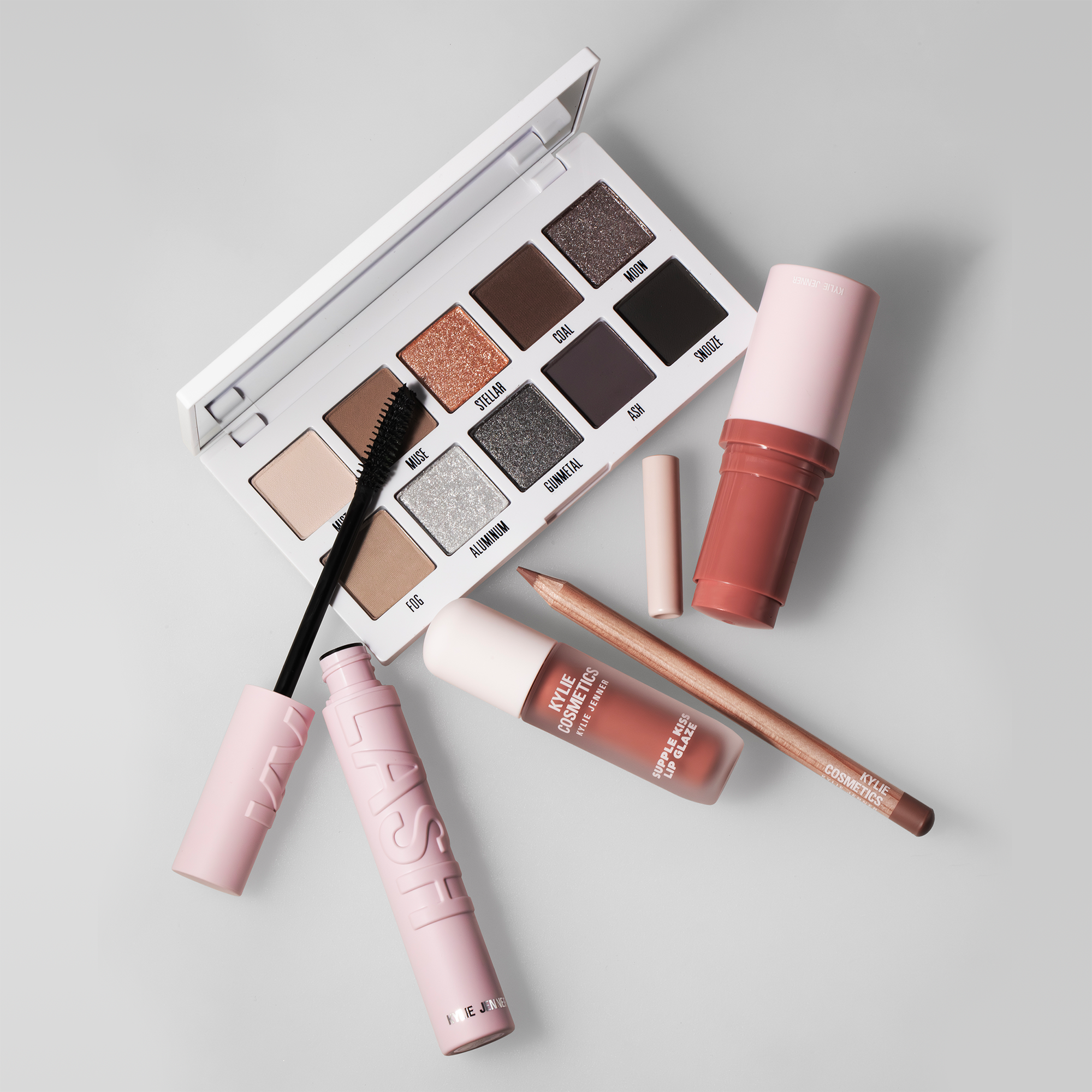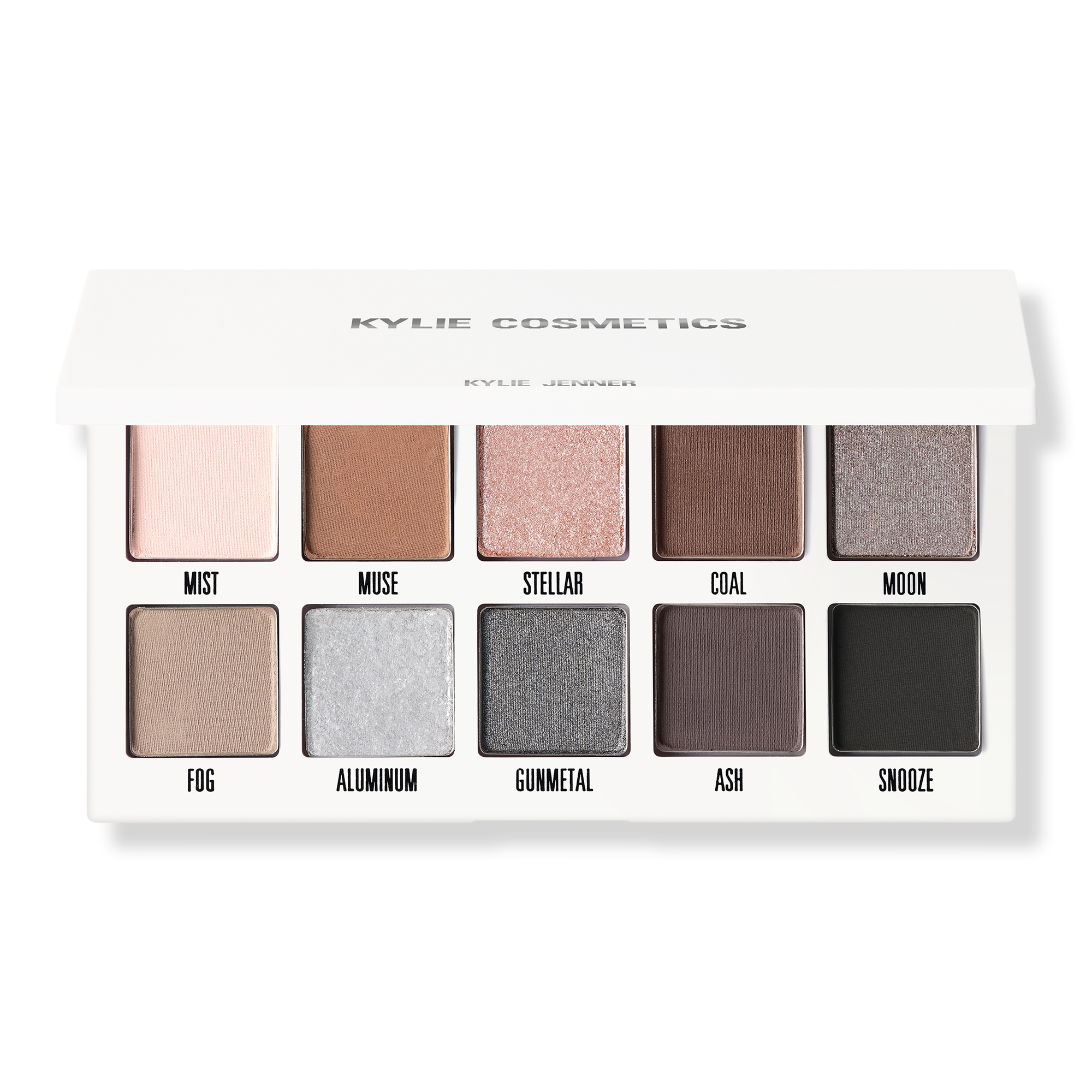The Kylie Cosmetics Pressed Powder Eyeshadow Palette contains 10 highly pigmented shades. Available in matte, shimmer, and metallic finishes, these velvety smooth, easy-to-blend formulas glide on effortlessly while delivering one-swipe intense color payoff.