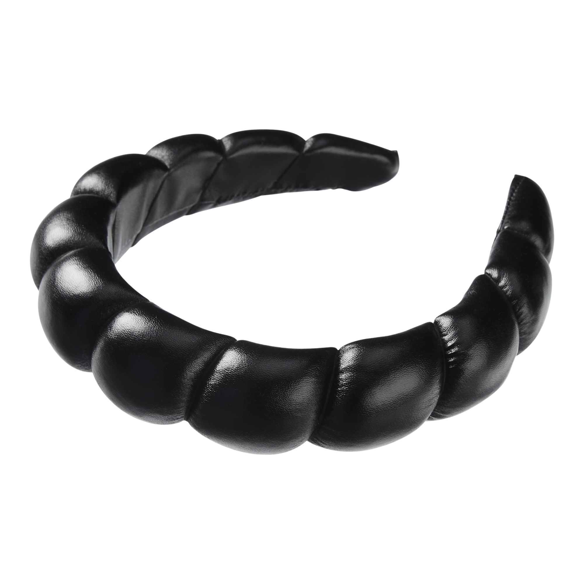The trendy bubble headband gets an edgy and glam update with this Scünci PRIMP headband in shiny black faux leather. Get ready for a night out by adding this as a final touch to your outfit!