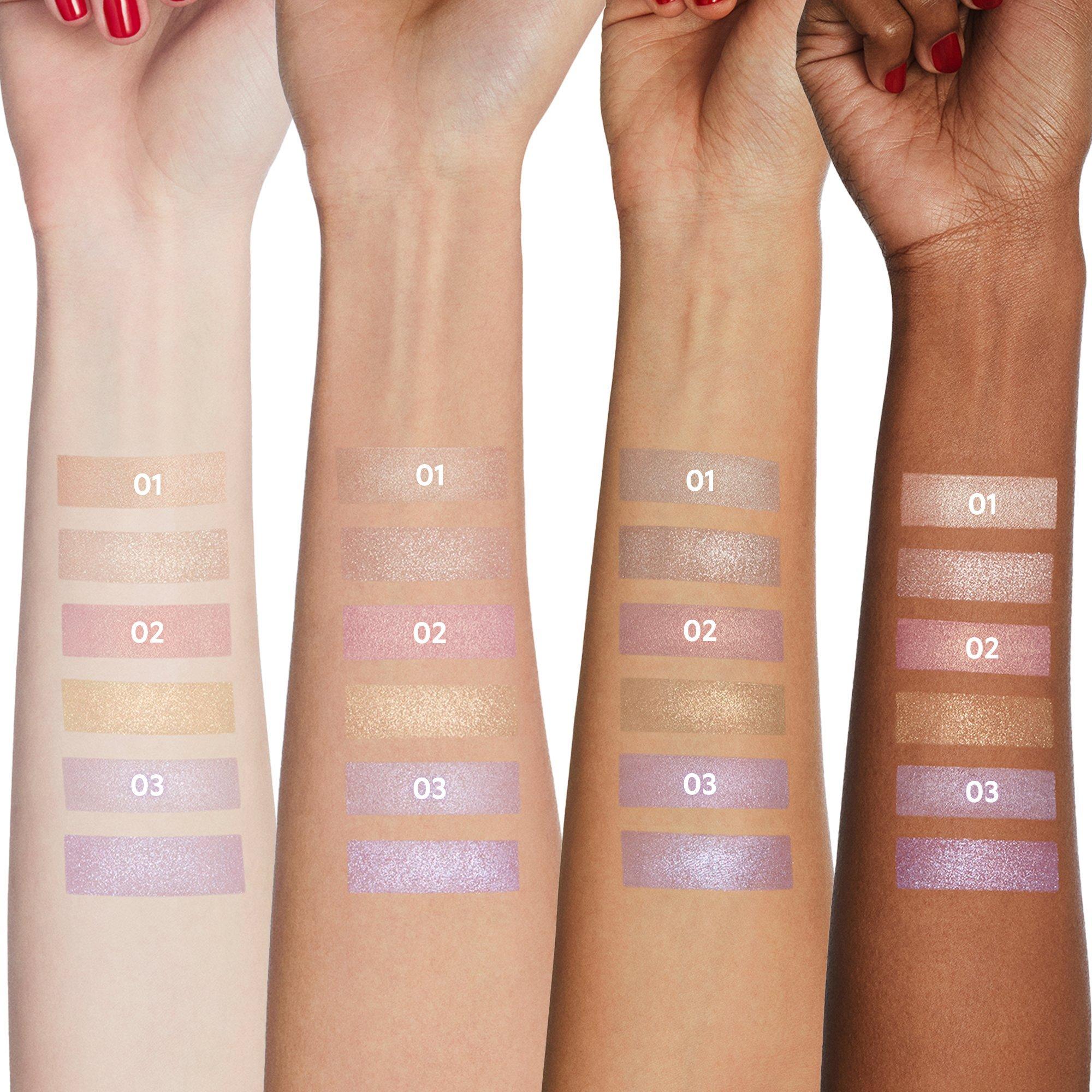 3D Glow: Apply to C-zone, nose bridge, and nose tip to enhance facial dimension and natural radiance. Accent Makeup: Can be used on face and body to add a subtle glow and luminous accent.