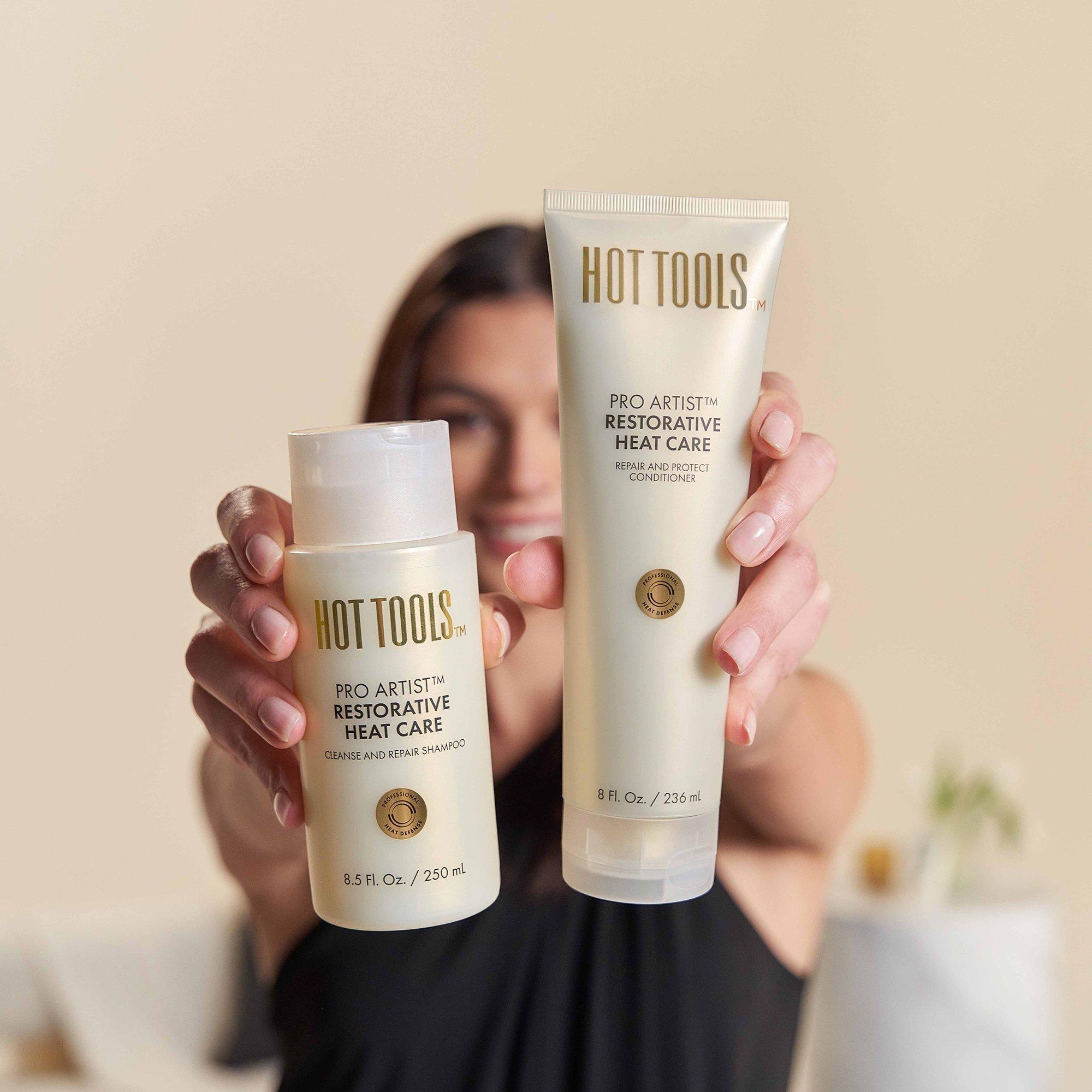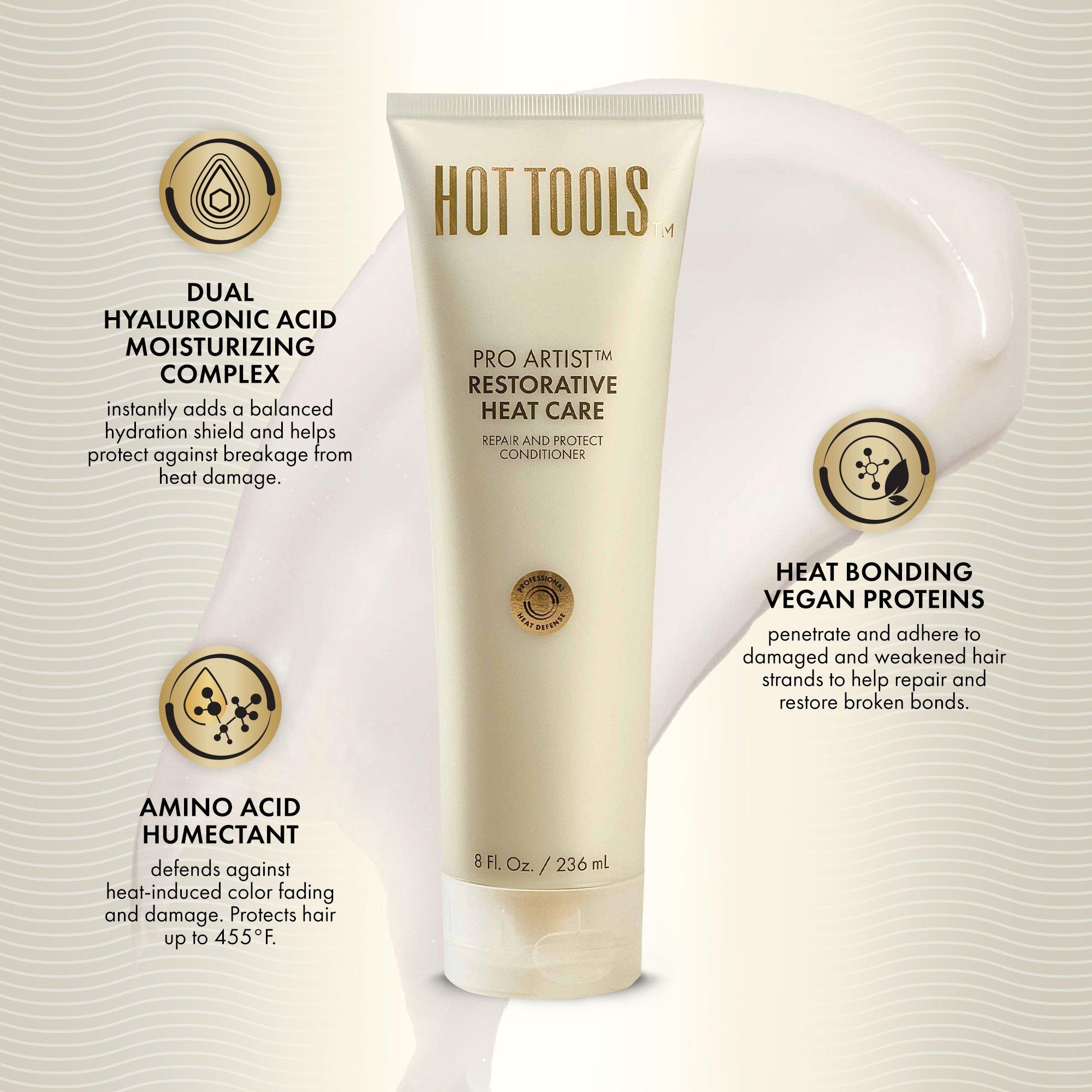 Hot Tools Pro Artist Restorative Heat Care Repair and Protect Conditioner. A thermal protecting conditioner that delivers weightless hydration that helps repair and safeguard hair from heat styling. Leaves hair feeling soft, smooth, and moisturized.