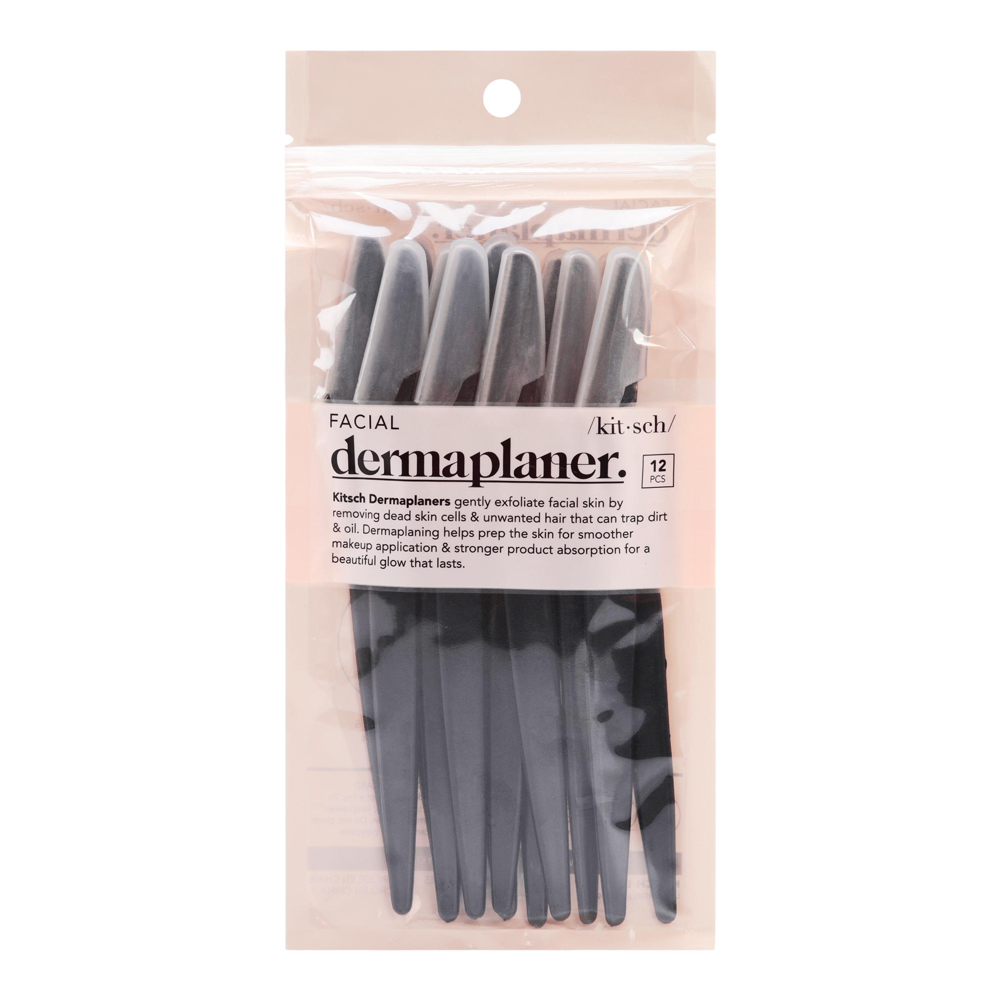 The Kitsch Pro Dermaplaner Set gently exfoliates facial skin by removing dead skin cells and unwanted hair that can trap dirt and oil.