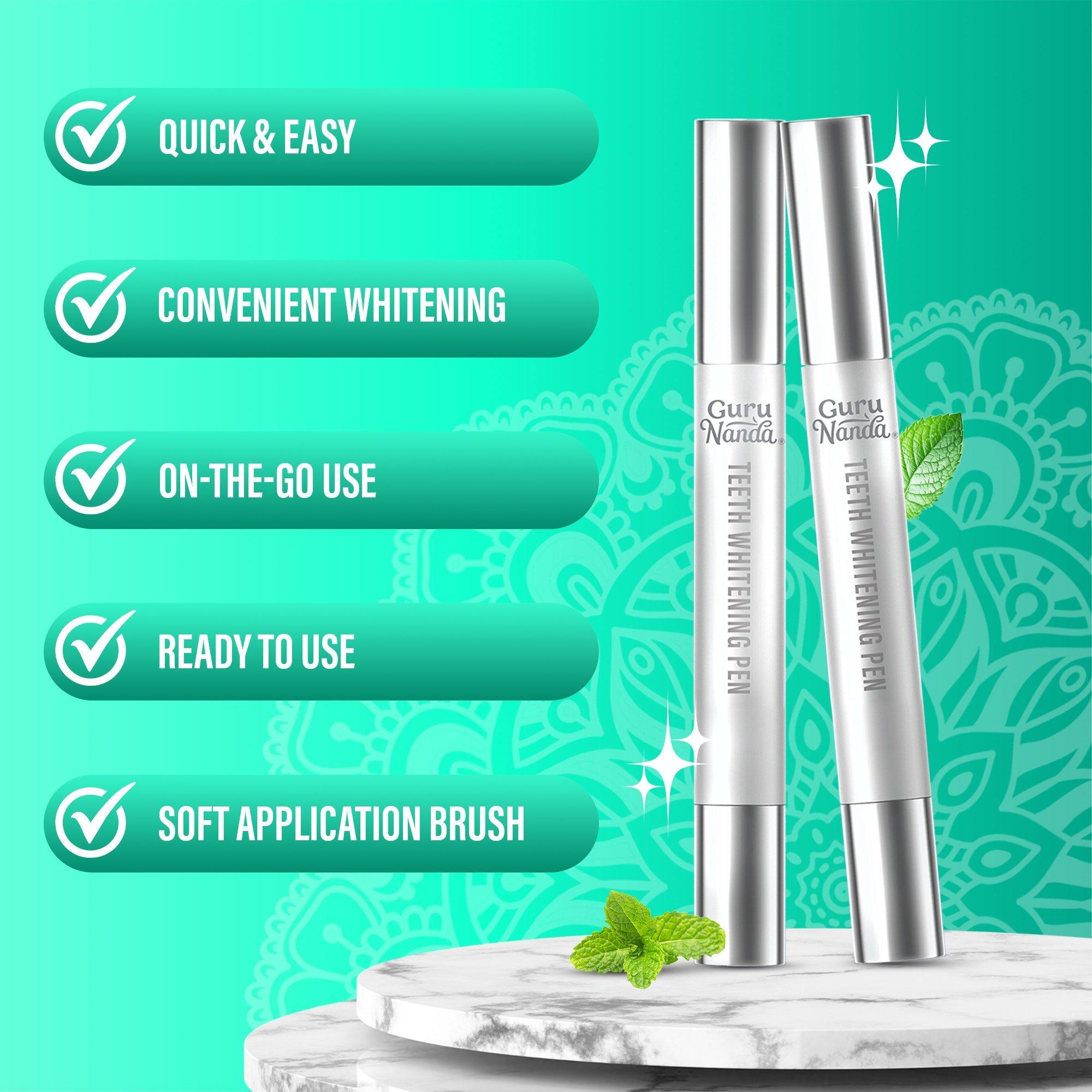 Achieve a brighter smile with GuruNanda Pro Formula Whitening Gel Pen. Compact, travel-friendly, easy-to-use, and offering up to 20 uses per pen.
