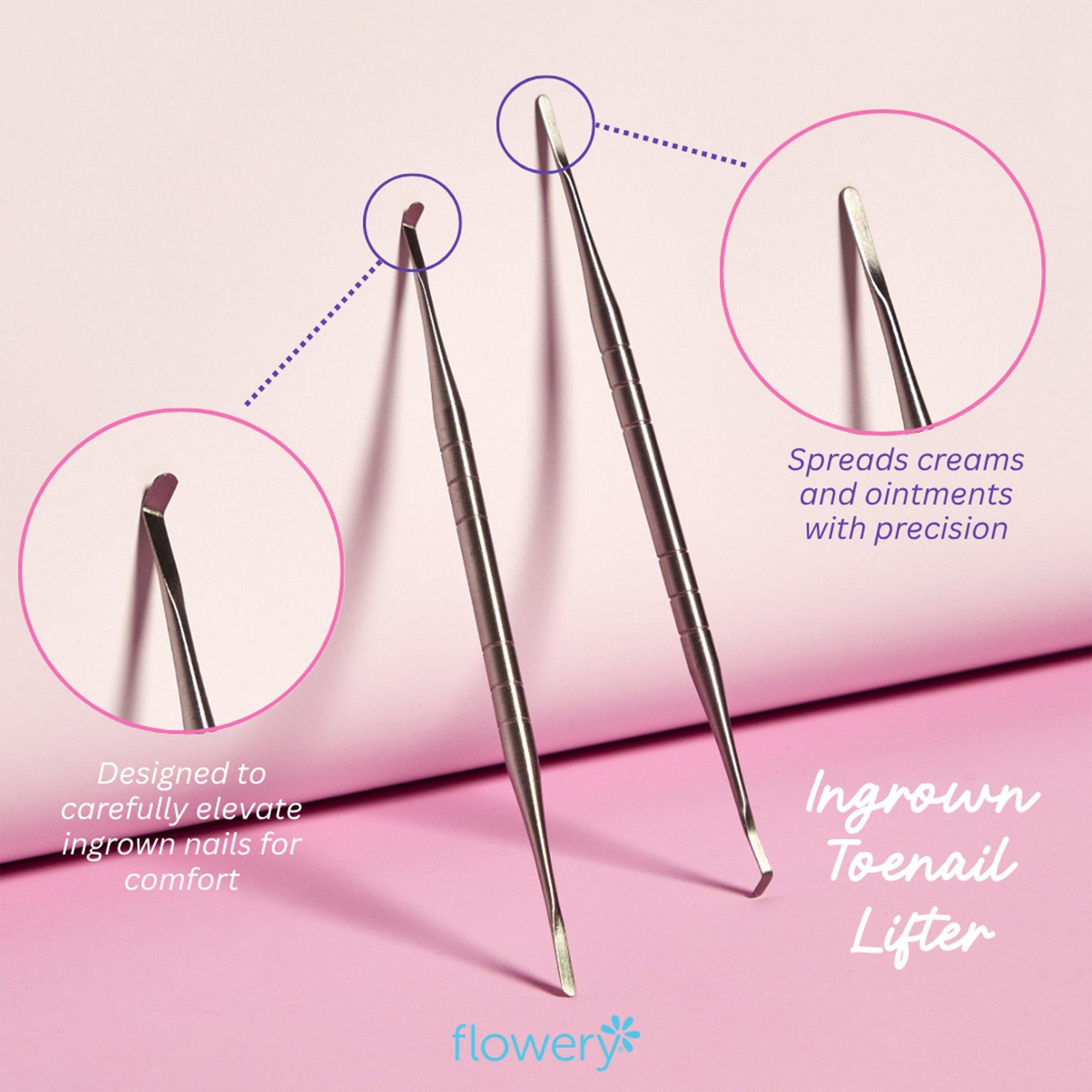 The Flowery Pro Ingrown Toenail Lifter Tool is designed to safely and effectively lift, separate and file away ingrown toenails, alleviating pain and providing relief from discomfort.