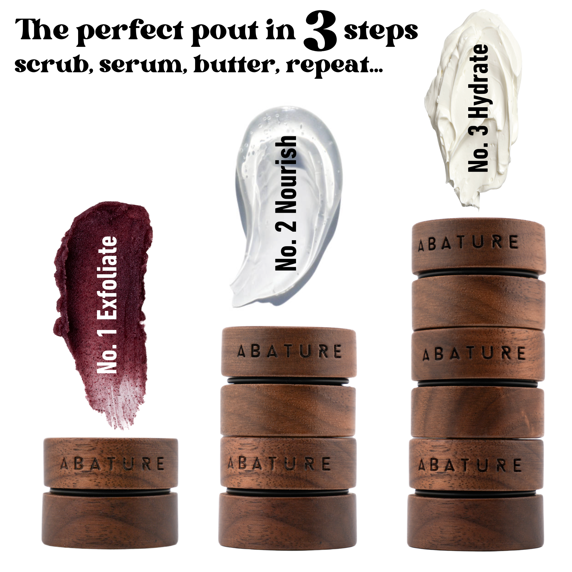 For best results, use this kit as a complete 3-step lip treatment to exfoliate, nourish, and seal in hydration. * Step 1: Exfoliate -Begin with clean, dry lips. Apply a pearl-sized amount of lip scrub and gently massage in circular motions for 10–20 seconds to lift away dry, flaky skin. Rinse thoroughly and pat lips dry. * Gently exfoliates and smooths the lips * Prepares lips for optimal absorption of treatment products * Step 2: Nourish-Apply a small droplet of lip serum to freshly exfoliated lips. Using a healing stone or fingertips, massage lips for approximately 30 seconds to encourage absorption and support circulation. * Delivers deep hydration and nutrients * Supports collagen and lip barrier health * Step 3: Seal-Finish by applying lip butter to seal in the benefits of the serum. Use throughout the day as needed, or apply a generous layer as an overnight lip mask for intensive hydration. * Locks in moisture and protects lips * Leaves lips soft, smooth, and visibly healthy