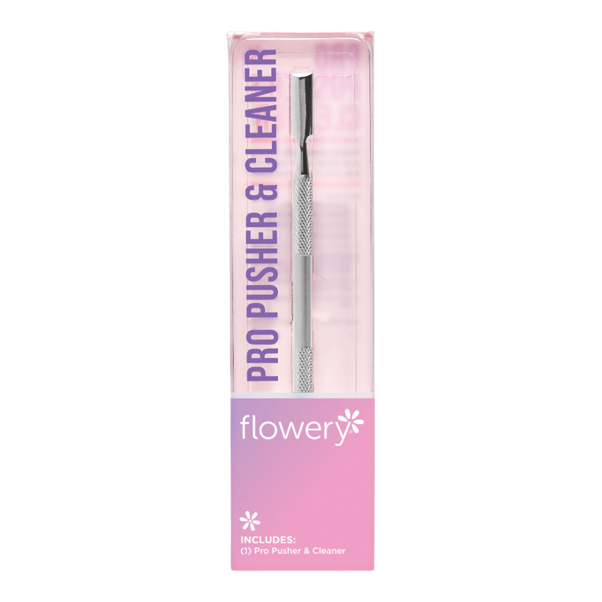 Flowery's Pro Pusher and Cleaner is a 2-in-1 nail prep tool that allows you to gently push back cuticles and clean under your nails with ease.