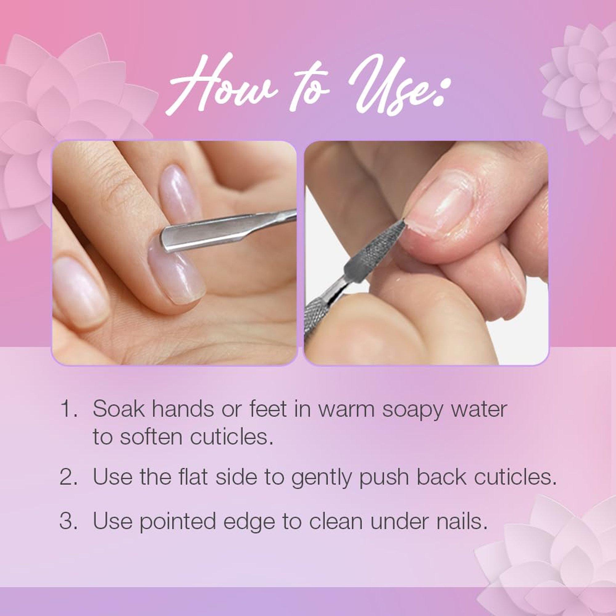 2. Use the flat side to gently push back cuticles.