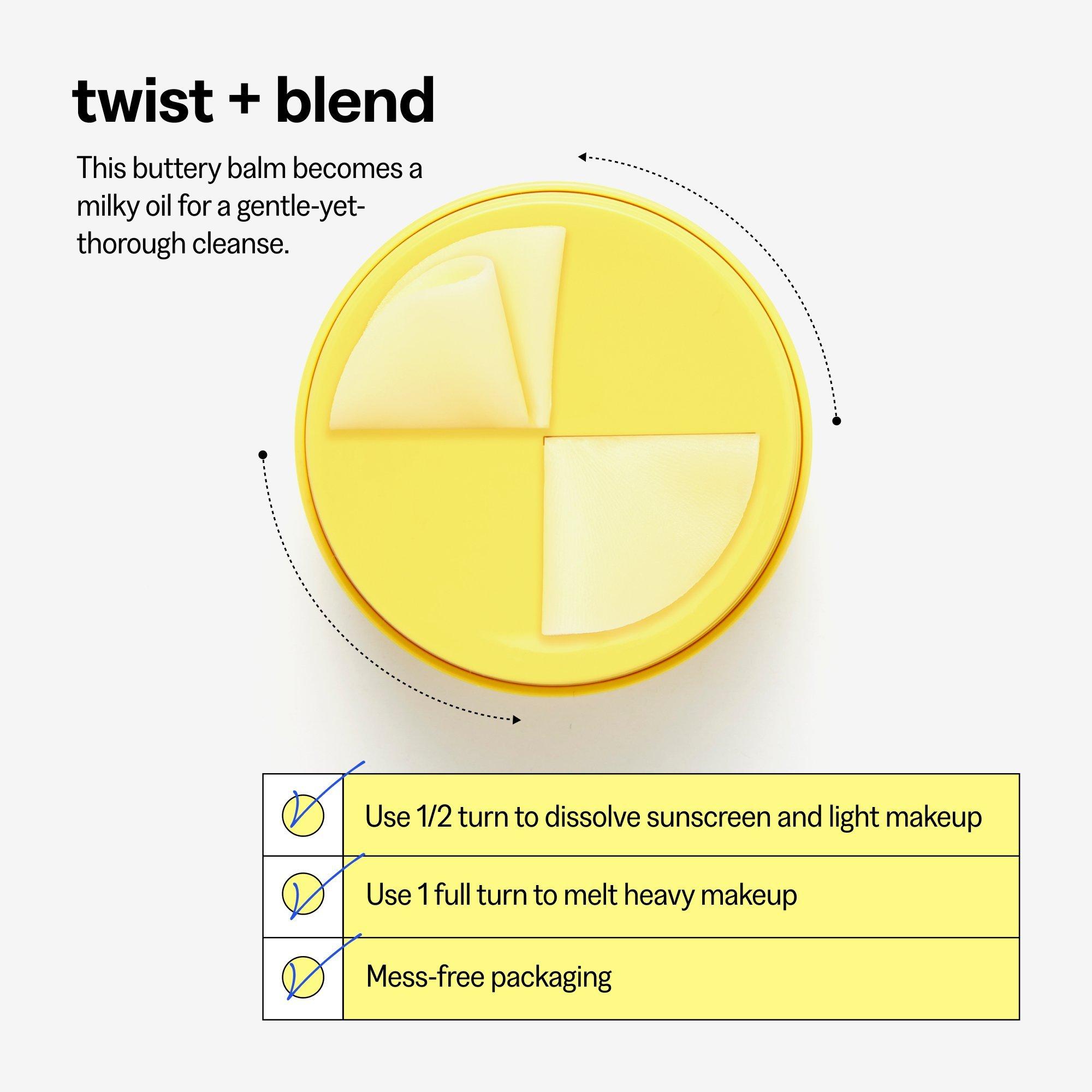 Twist clockwise to dispense the balm and gently massage it across your face. Use 1/2 turn of formula to dissolve sunscreen and light makeup. Use 1 full turn to melt heavy makeup. Wet your hands to transform the balm into a milky oil. Finish cleansing and rinse thoroughly. Follow up with Propolis Treatment Essence and Energy Active Serum.