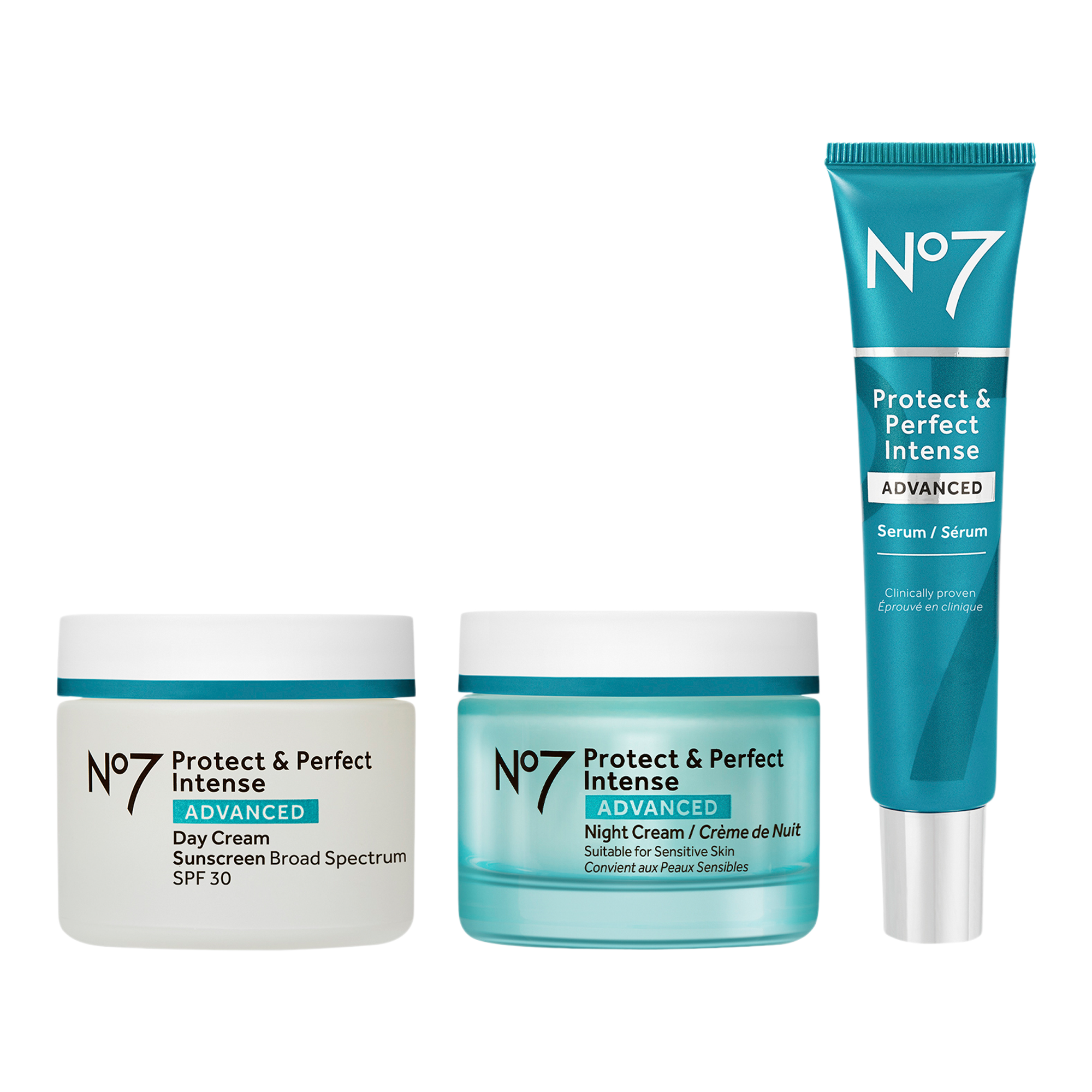 Discover No7's acclaimed Protect & Perfect skincare system with the Protect & Perfect Intense Advanced Skincare System. This skincare kit includes No7 Protect & Perfect day cream, night cream and serum. No7 is the UK's best-kept beauty secret with over 85 years of trusted expertise.