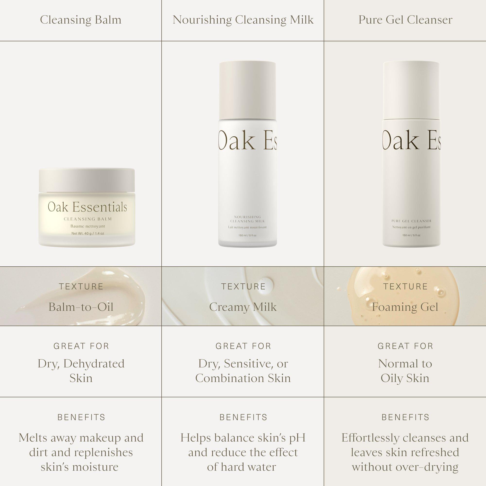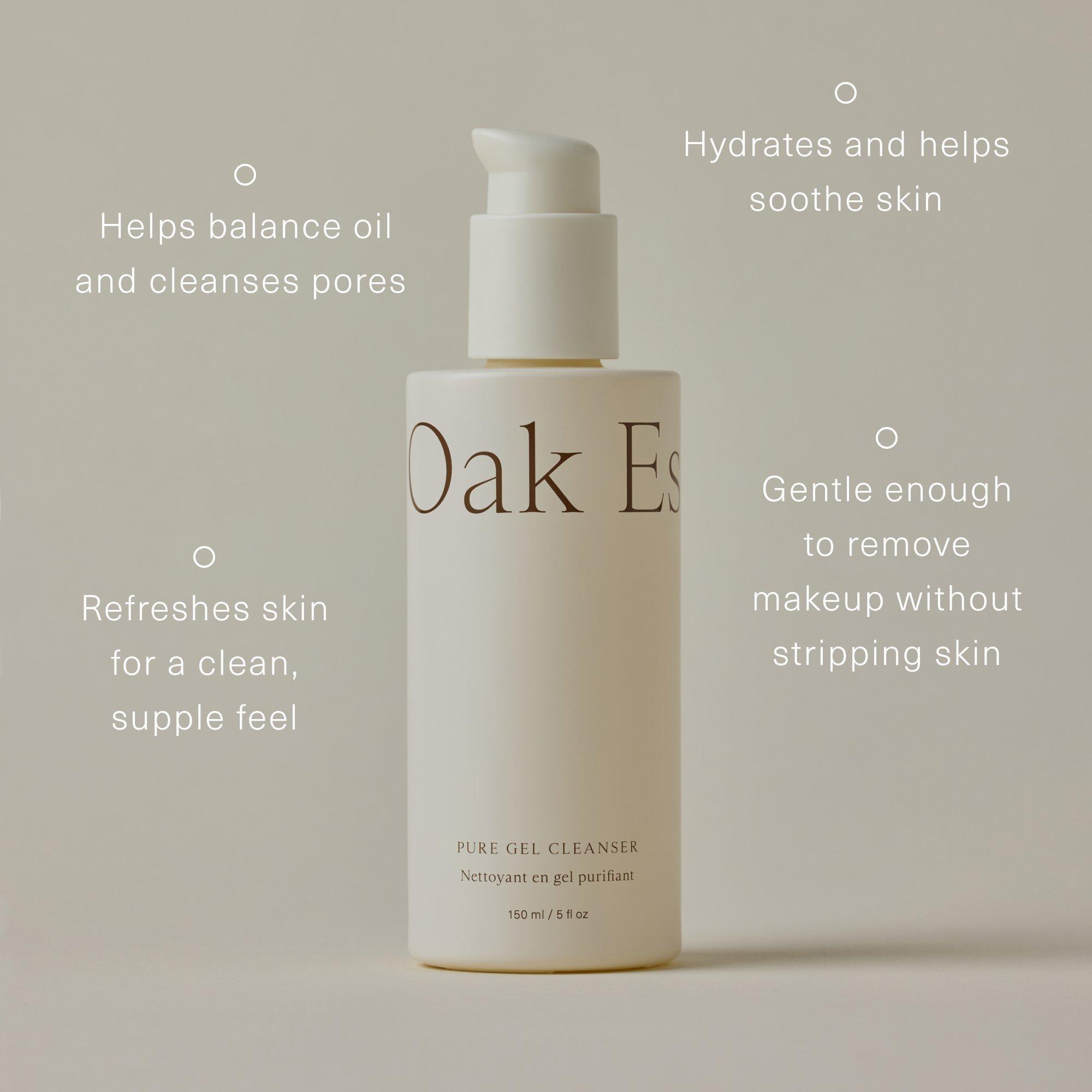 Oak Essential's clarifying, Pure Gel Cleanser is a clarifying gel cleanser that helps balance oil and reveals a nourished, brighter-looking complexion. Aloe Leaf Juice and Carrot Root Extract help hydrate and calm, leaving the skin feeling thoroughly refreshed.