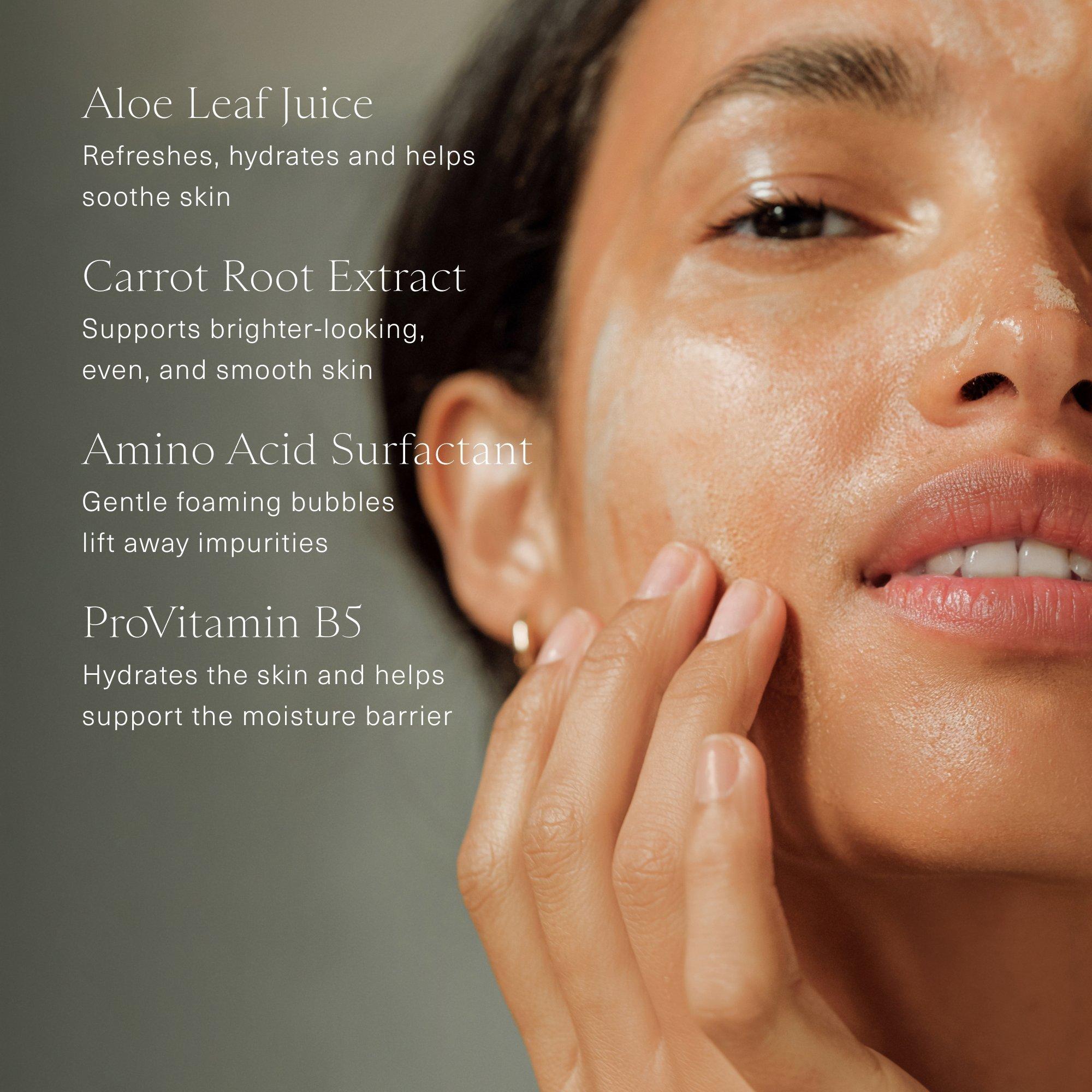 • Niacinamide, helps balance oil and clean pores while lifting away makeup and impurities.