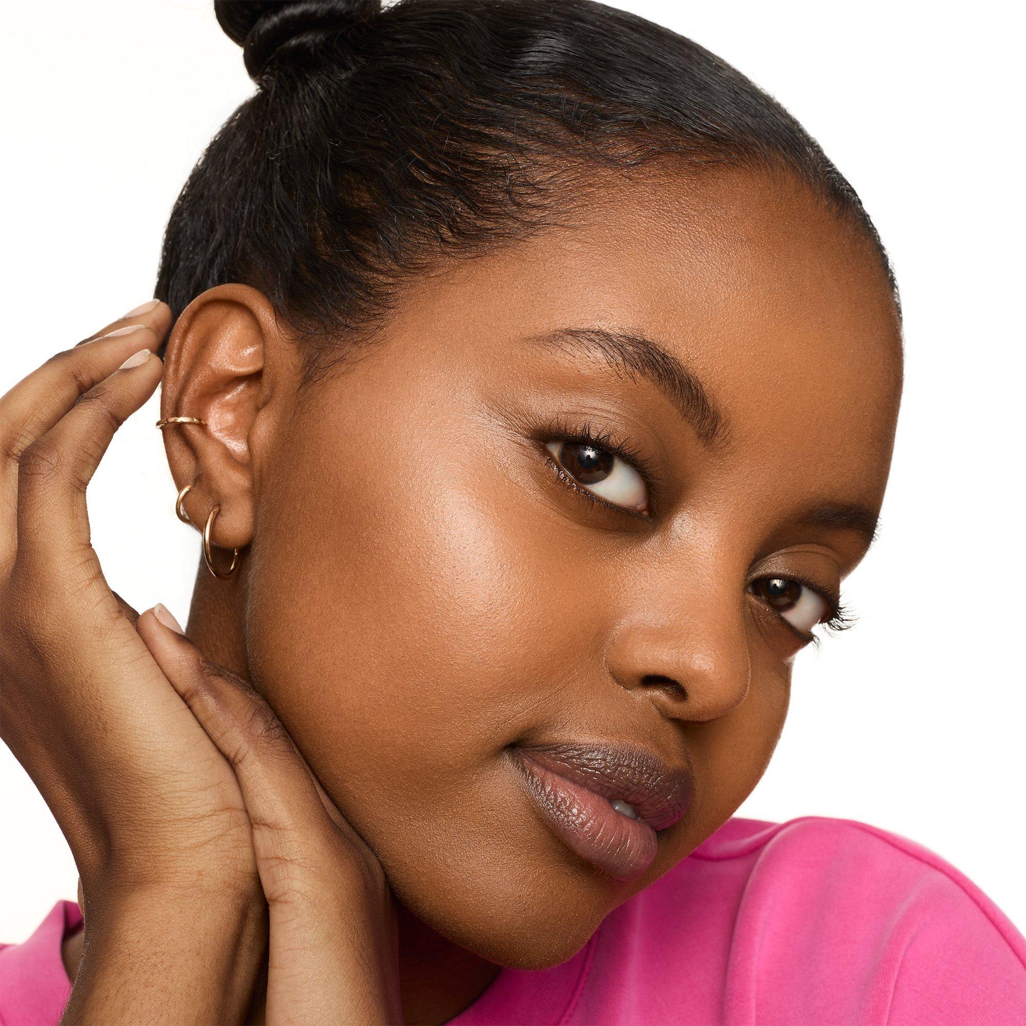 Using a small fluffy brush, apply essence pure NUDE highlighter to the tops of the cheekbones, inner corners of the eyes, bridge of the nose, cupid's bow and on the brow bone.