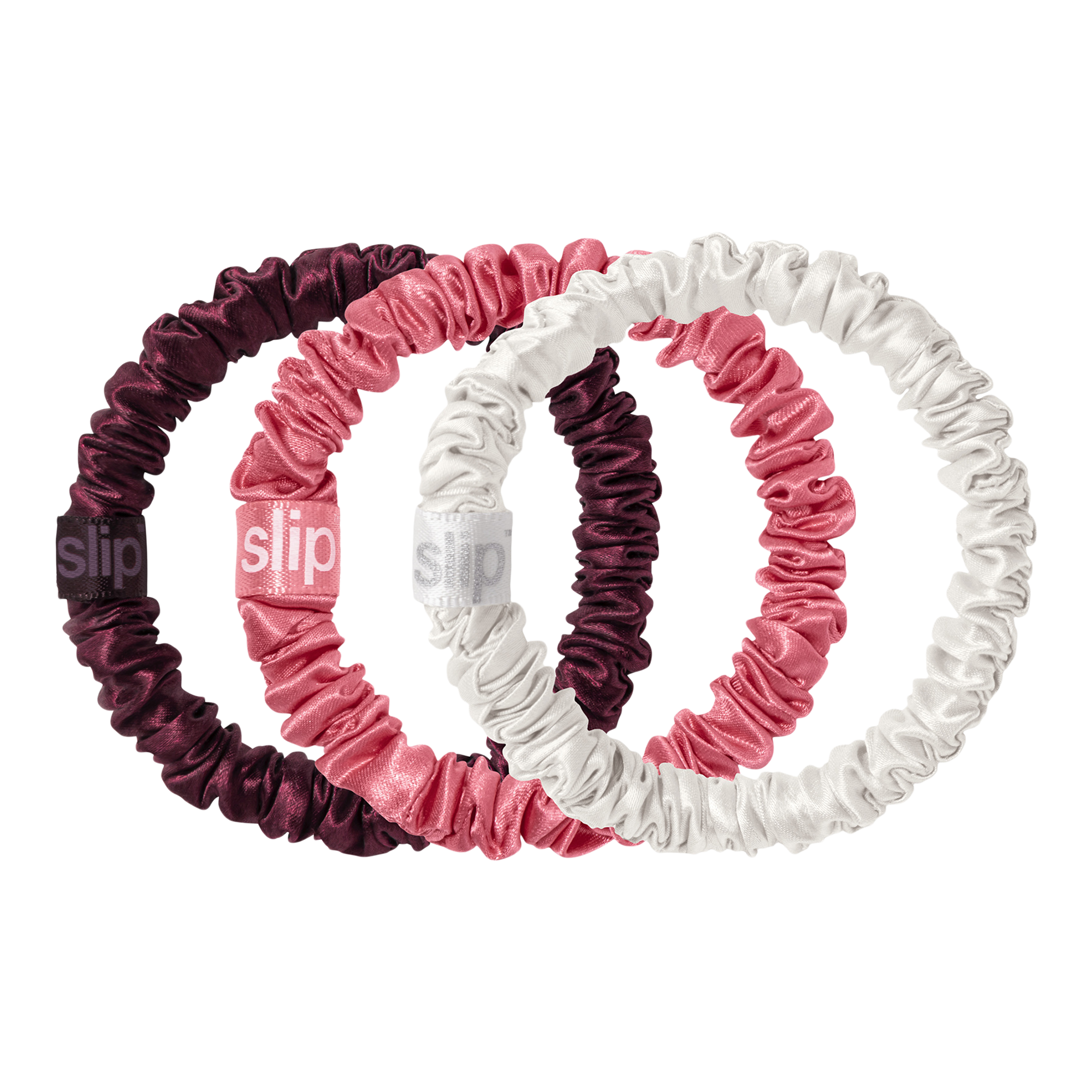 Slip's Pure Silk Skinny Scrunchie Trio Tin is a set of three award-winning slip scrunchies. Designed to be anti crease, anti breakage. Upgrade your hair tie game.