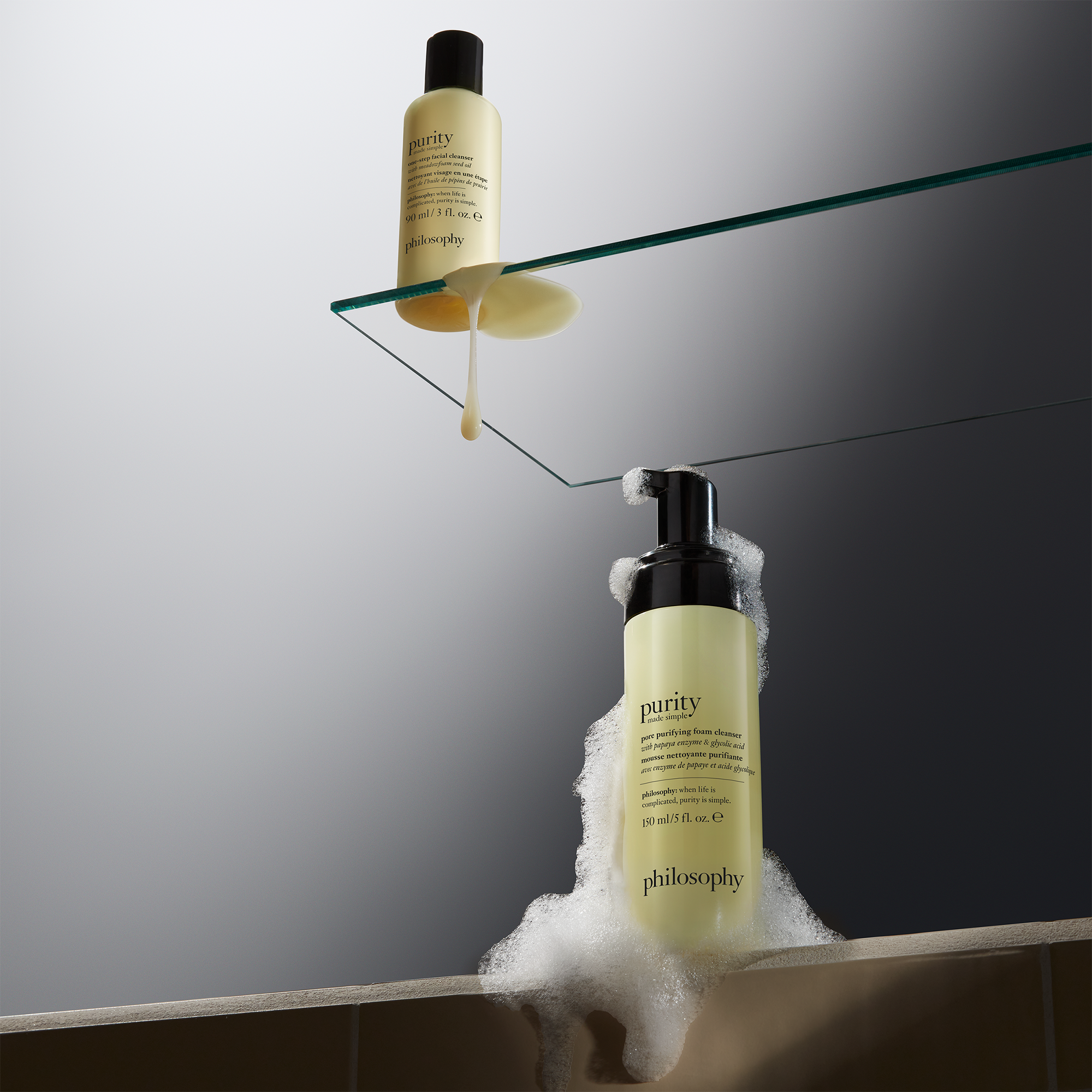 Purity One-Step Facial Cleanser: Prep your skin in the morning by pumping onto fingertips and applying to damp face and neck. Massage for 30-60 seconds. Rinse product off thoroughly and complete the Philosophy skincare routine with the Purity Made Simple Pore Minimizing Serum and the Purity Made Simple Moisturizer.