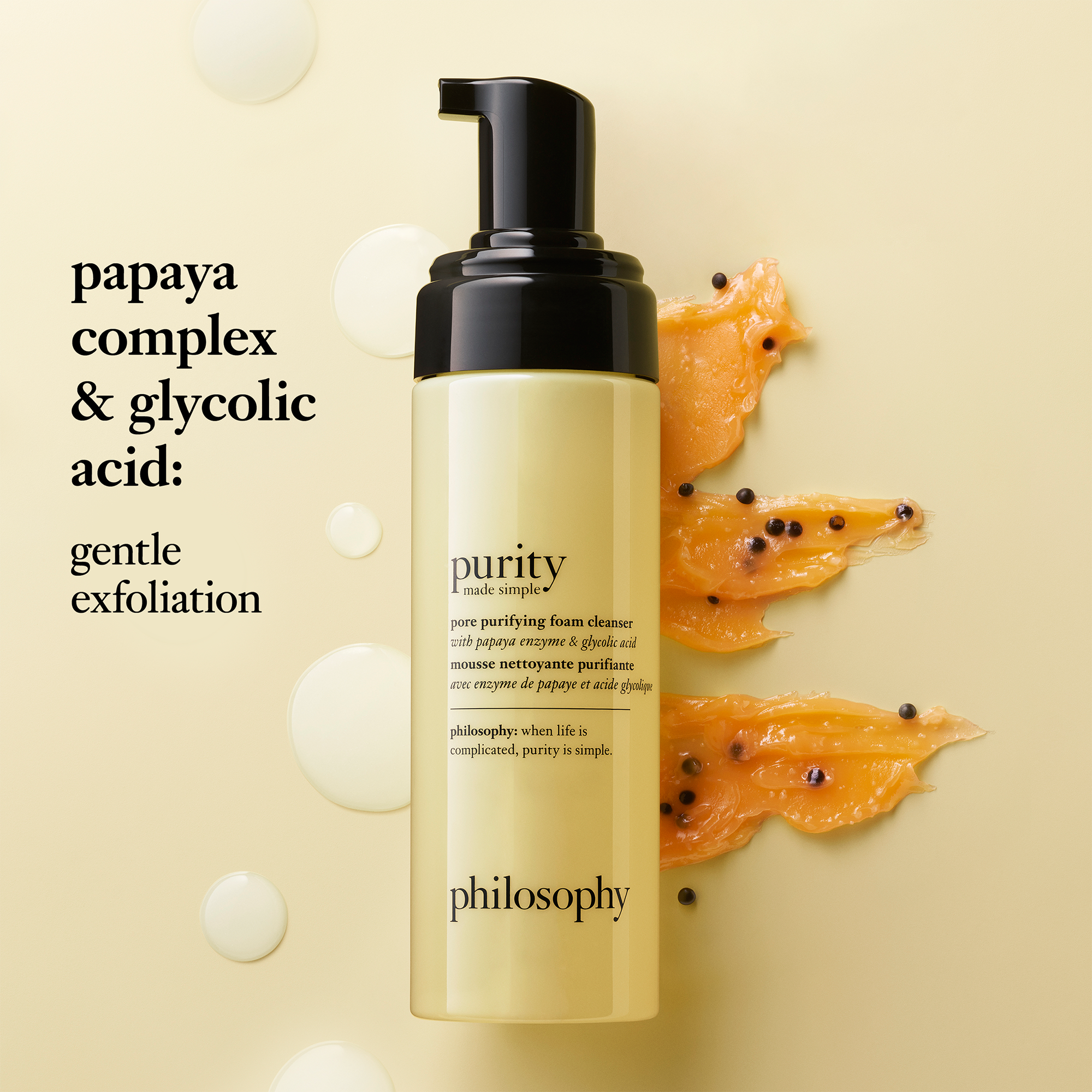 Purity Pore Purifying Foam Cleanser: Use at night by pumping cleansing foam onto fingertips and applying to damp face and neck. Massage for 30-60 seconds. Rinse product off thoroughly and complete the Philosophy skincare routine following the same steps as above for optimal skin hydration.