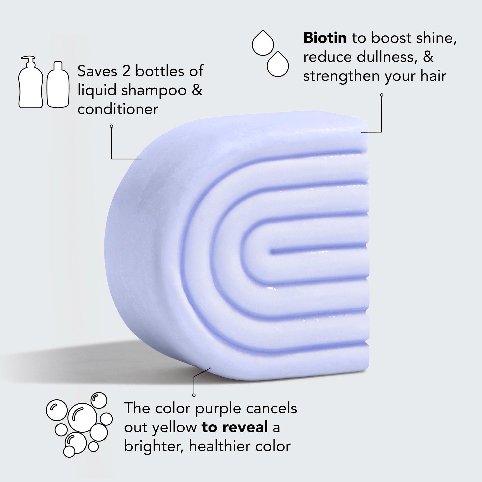 Kitsch Purple Toning Solid Shampoo and Conditioner Bar Combo Pack is the perfect toning shampoo for all blondes with color-treated, highlighted, or natural color. Neutralizes unwanted brassiness and yellow undertones. Enjoy smoother, stronger, and more vibrant blonde hair after just one use!