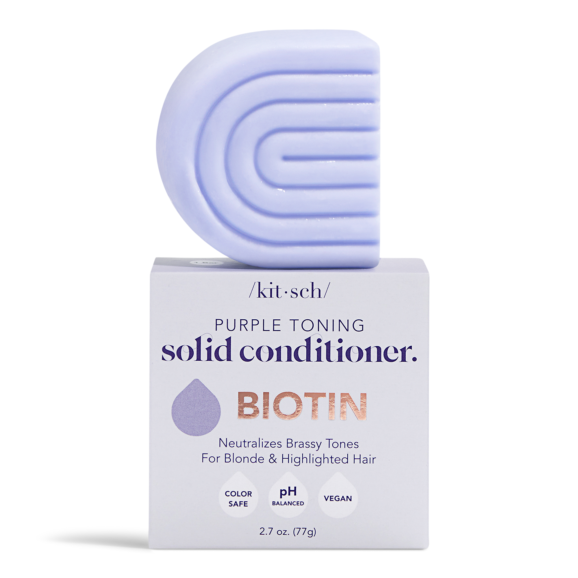 Kitsch's Purple Toning Solid Conditioner Bar is the perfect toning conditioner for all blondes with color-treated, highlighted, or natural hair. Nourishes, detangles, and neutralizes unwanted brassiness and yellow undertones.