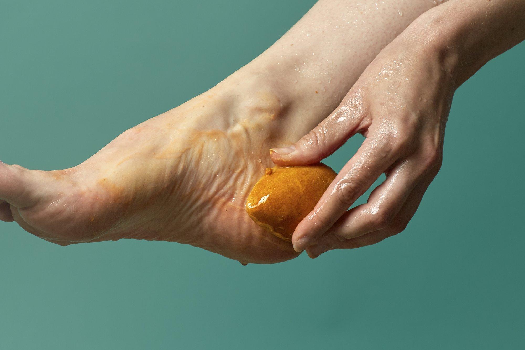 Pumice Power Foot Soap: Wet pumice and feet. Scrub away dry, rough skin.