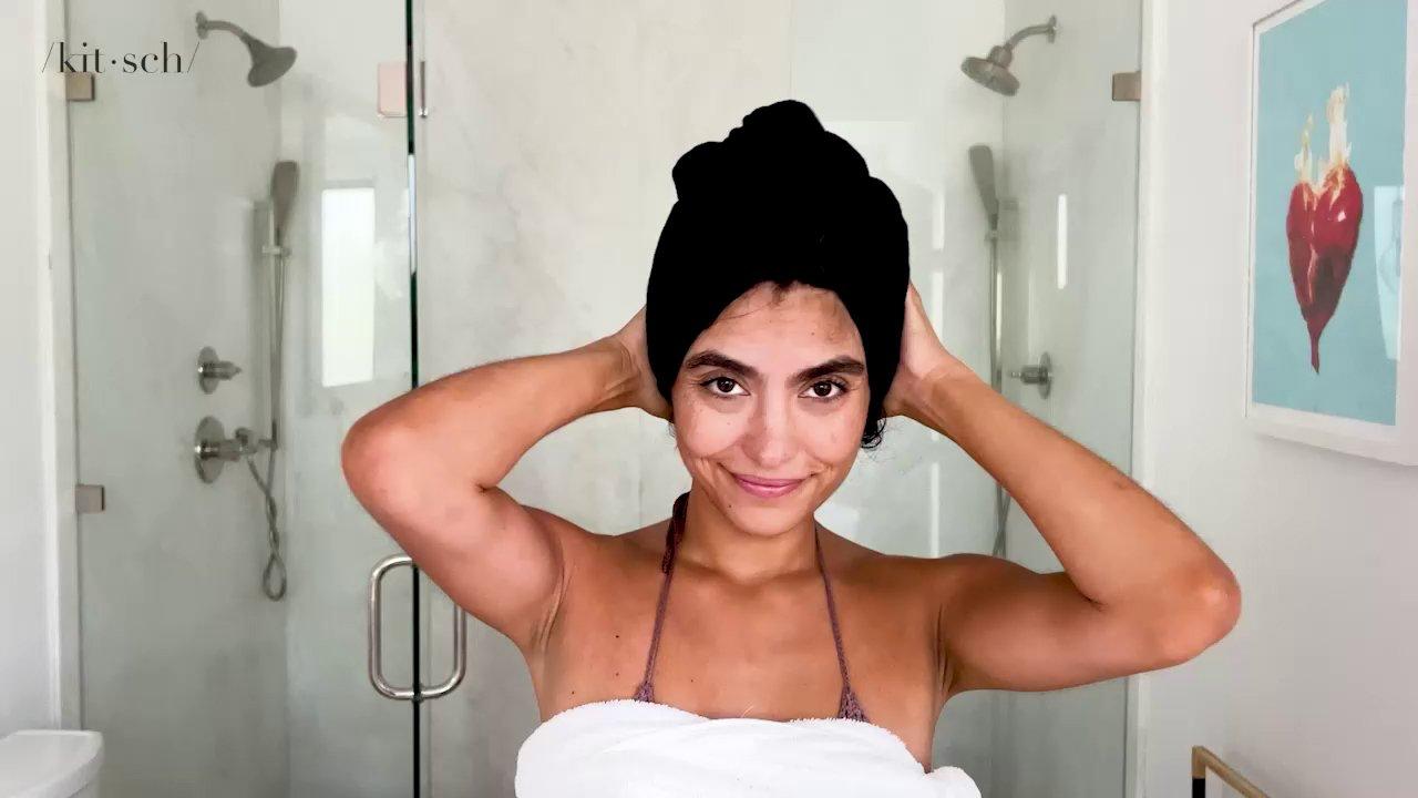 Kitsch's Eco-Friendly Hair Towel is a luxuriously soft and absorbent hair towel that dries hair quickly and conveniently.
