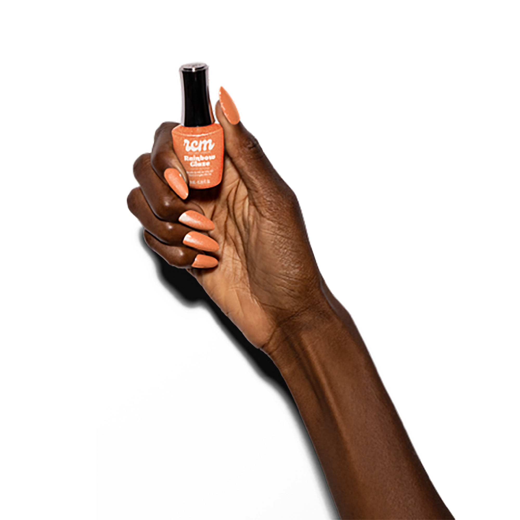 Prep nails for gel polish application. Apply RCM gel base coat and cure. Apply a dark gel polish shade of choice and cure. Apply Cat-Eye color of choice and cure for 30 second. Apply a second coat and magnetize to create desired design. Apply RCM gel top coat and cure. Cleanse with a nail wipe and purify to remove the tacky layer.