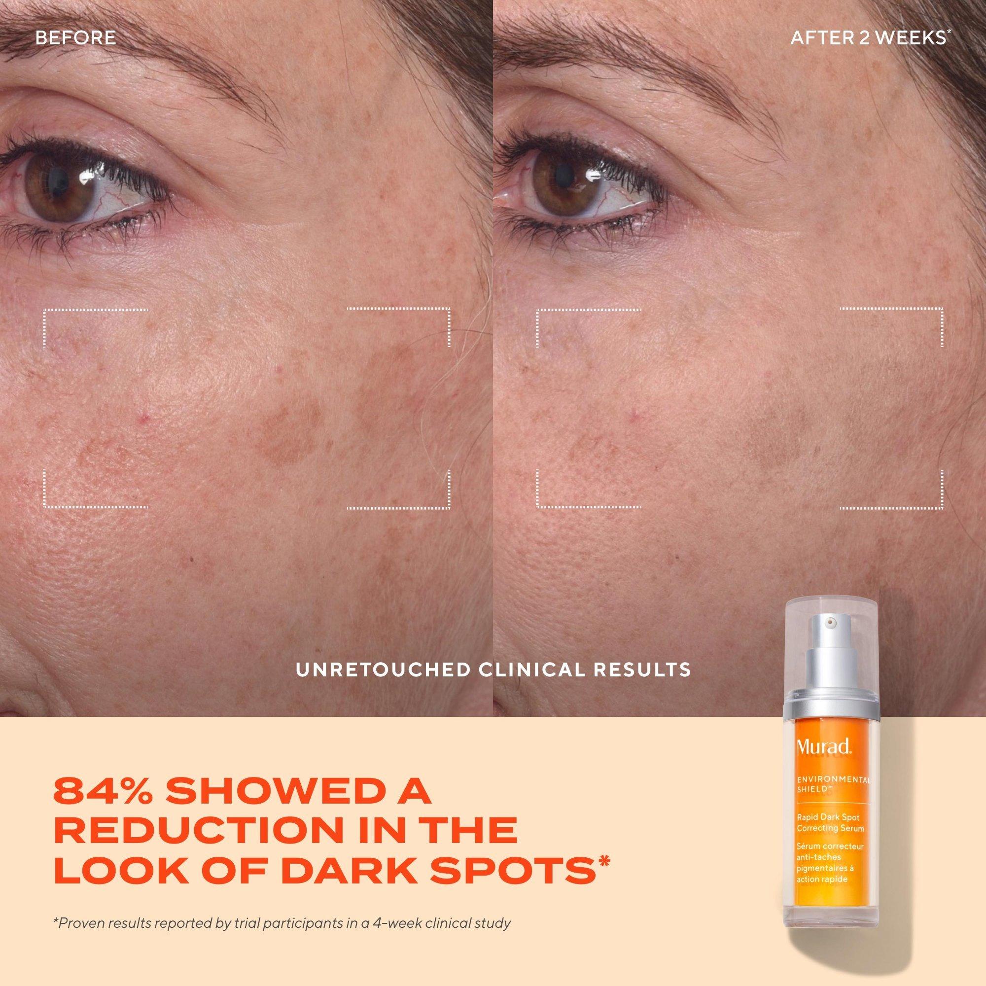 Murad's Rapid Dark Spot Correcting Serum visibly brightens skin and reduces dark spots in 2 weeks, while smoothing skin texture for more even-looking skin