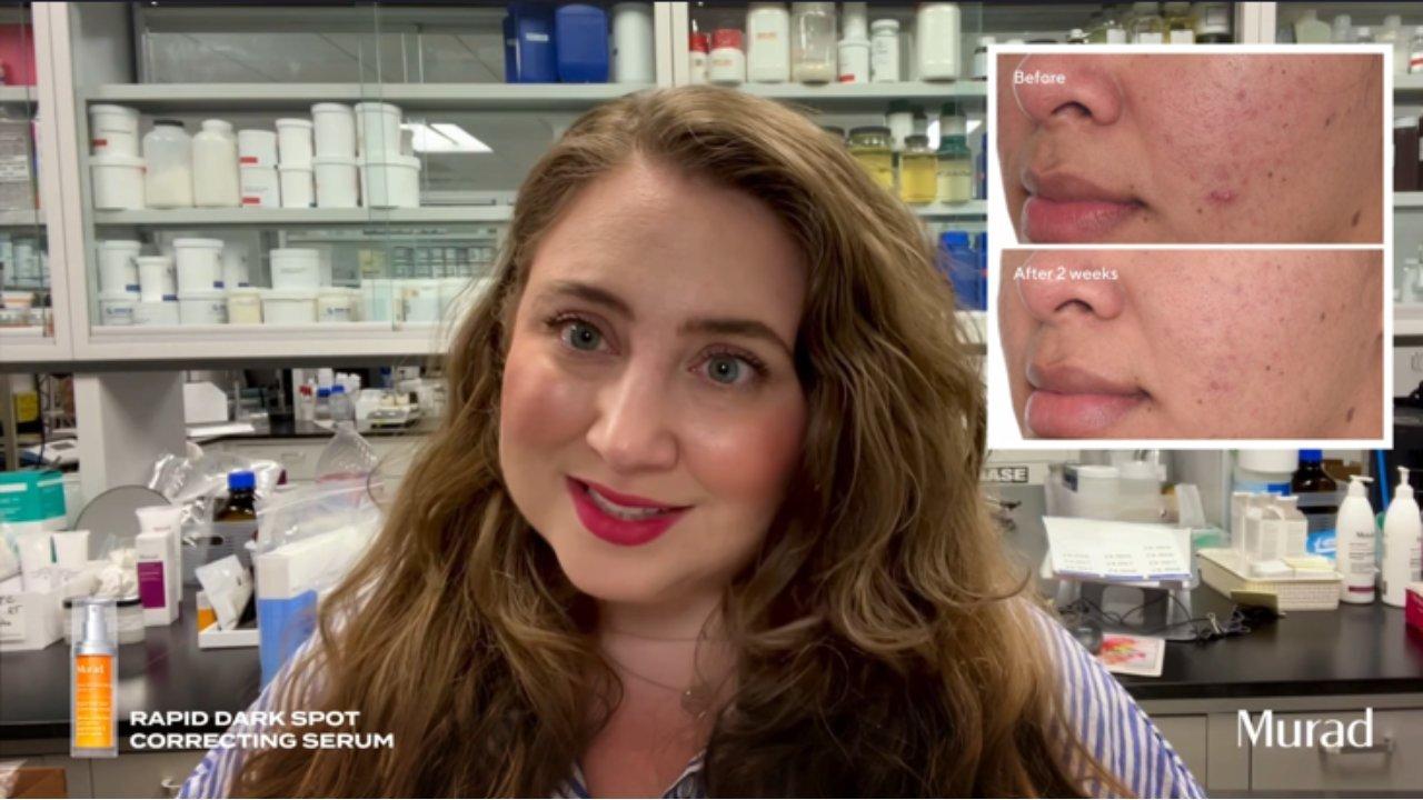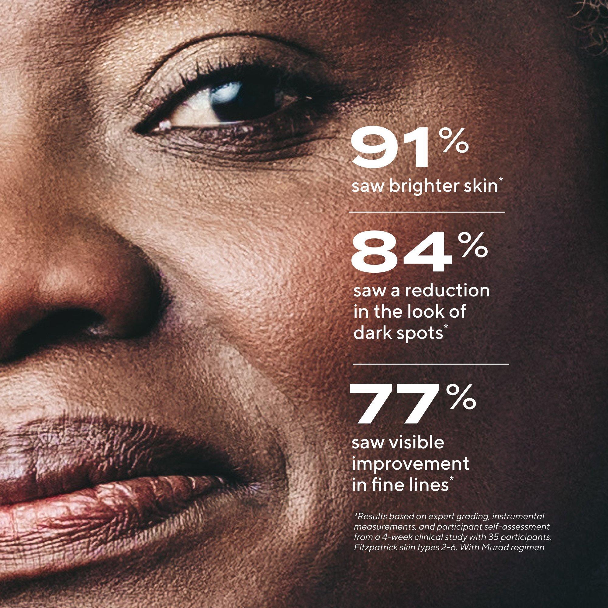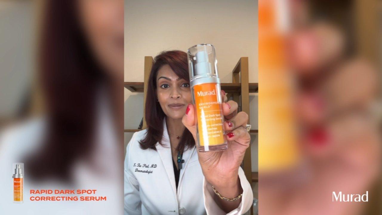 Murad's Rapid Dark Spot Correcting Serum visibly brightens skin and fades dark spots in 7 days, while smoothing skin texture for even-looking skin.