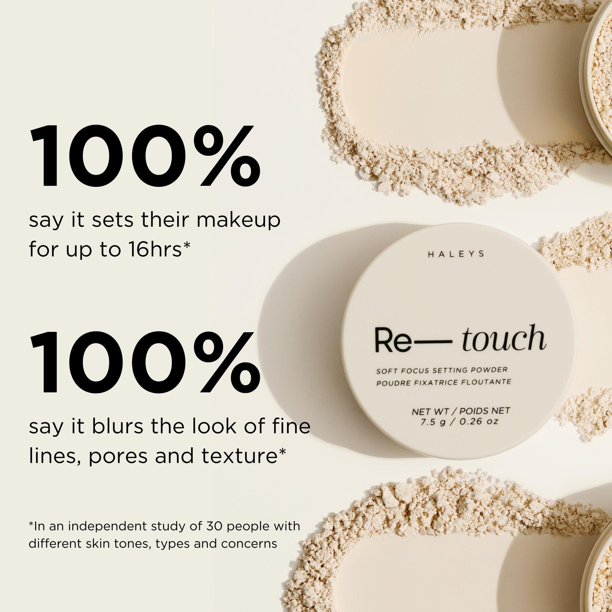 HALEYS Re-touch Talc Free Soft Focus Setting Powder is an ultra-blurring, talc-free translucent powder that diffuses skin texture, eliminates unwanted shine and sets makeup for up to 16 hours.