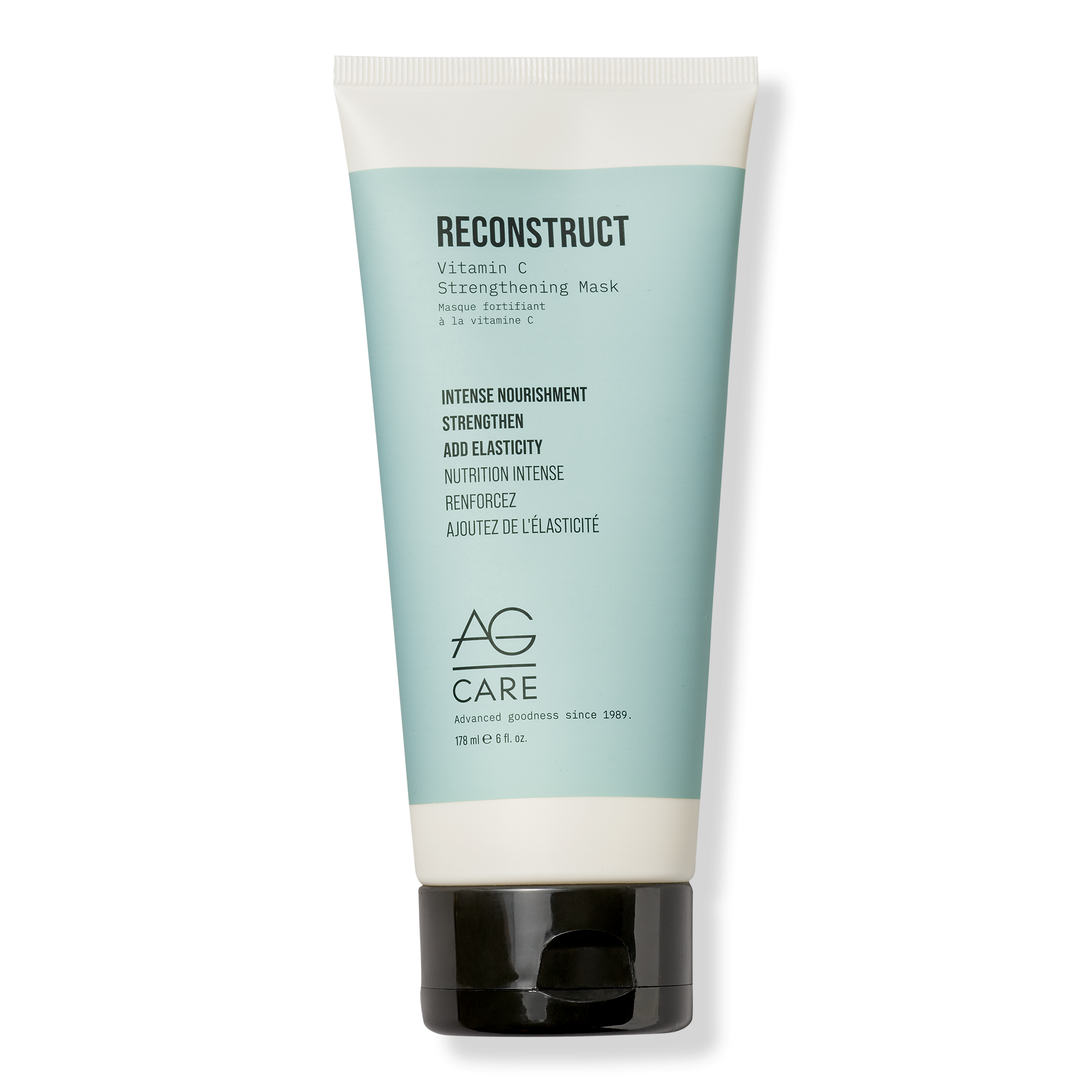 Get stronger, shinier and more radiant hair with AG Care Strengthen Reconstruct Vitamin C Strengthening Mask, plant-based squalene and shea butter to help increase collagen and add elasticity.