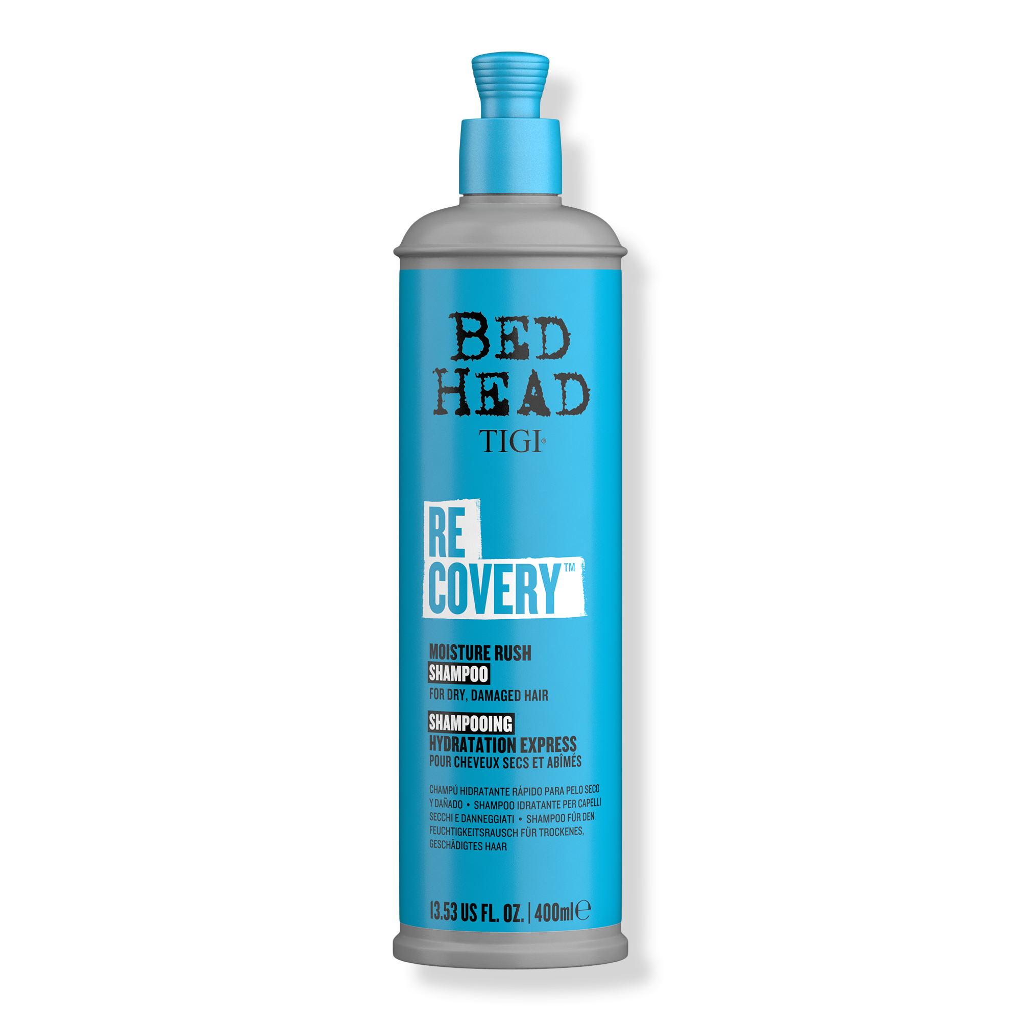 Give moisture-deprived, dry hair a rush of hydration with the Bed Head Recovery Shampoo! With remarkable technology that helps moisturizing ingredients stay on the hair, hair is served with moisture benefits all day long. This moisturizing shampoo hydrates, deeply cleanses and softens dry hair.