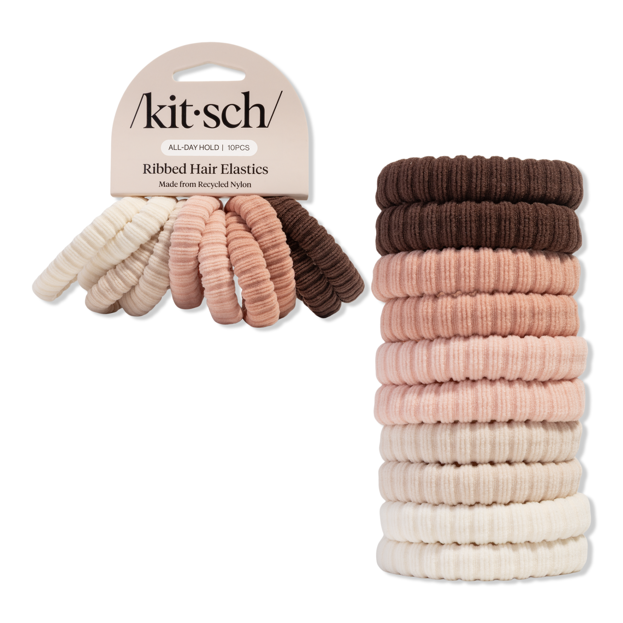 Kitsch Ribbed Hair Elastics combine style and function for everyday hair looks. The textured design gives a secure, no-slip hold while being gentle on strands, making them perfect for ponytails, buns, or half-up styles. Durable, chic, and easy to wear all day.