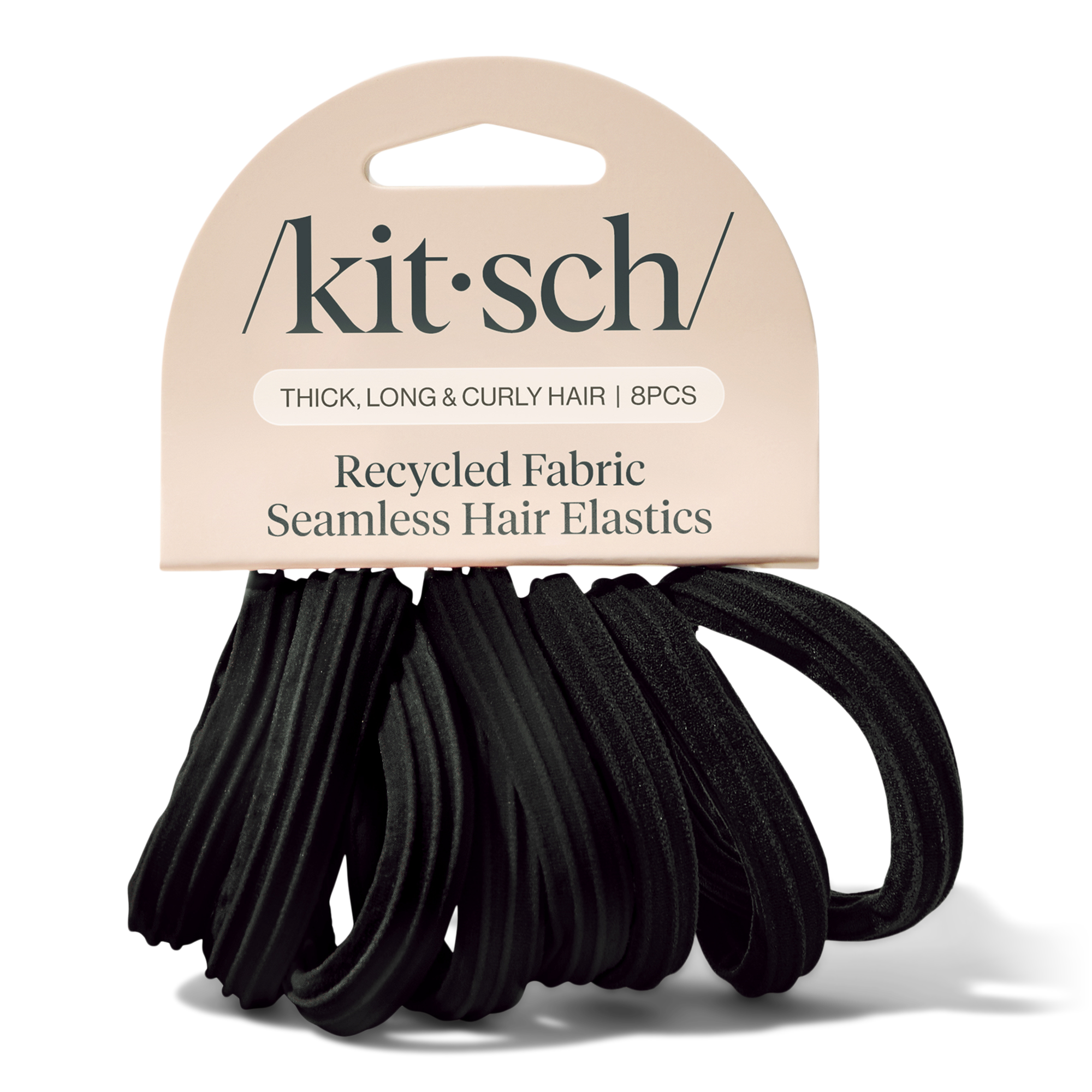 Kitsch Recycled Fabric Seamless Hair Elastics are your everyday styling essential. These elastics tie up your ponytail, bun, or half-up while being gentle on your hair. Experience the slip-free, soft comfort of these versatile black elastics, great for fine, thick, straight, and curly hair!