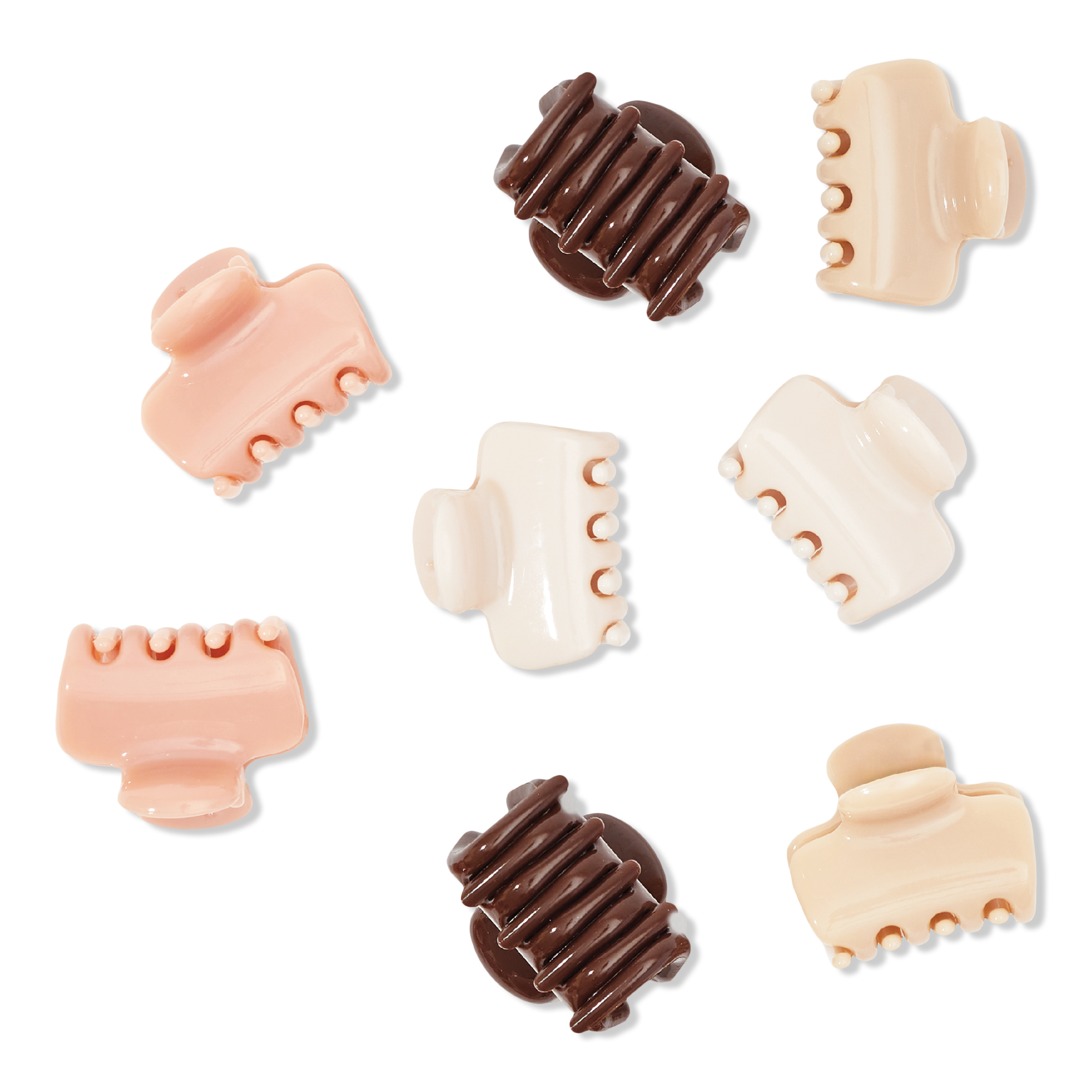 • Set of 8 mini claw clips in assorted neutral hues (2pcs in champagne, 2pcs in blush, 2 pcs in terracotta, and 2 pcs in brown) is perfect for clipping back small sections of hair
