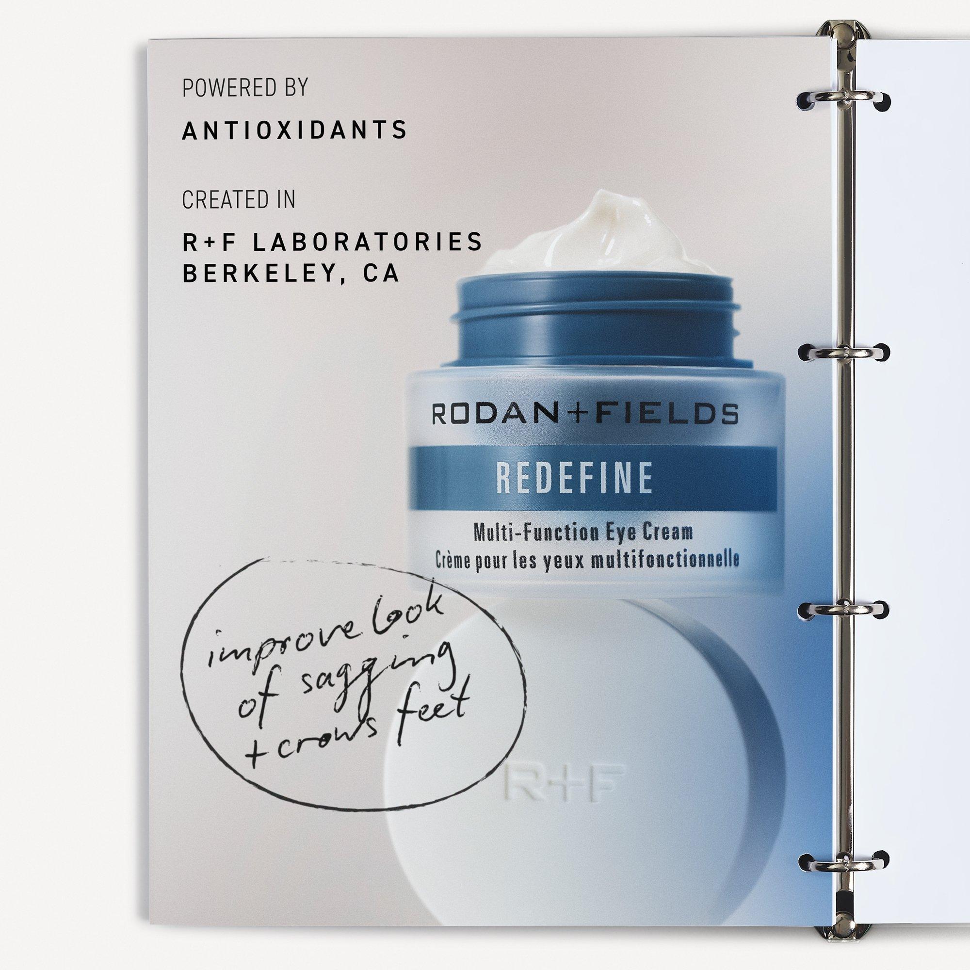 Rodan + Fields Redefine Multi-Function Eye Cream targeted anti-aging treatment strengthens, firms + lifts to minimize visible fine lines, wrinkles + crow's feet.