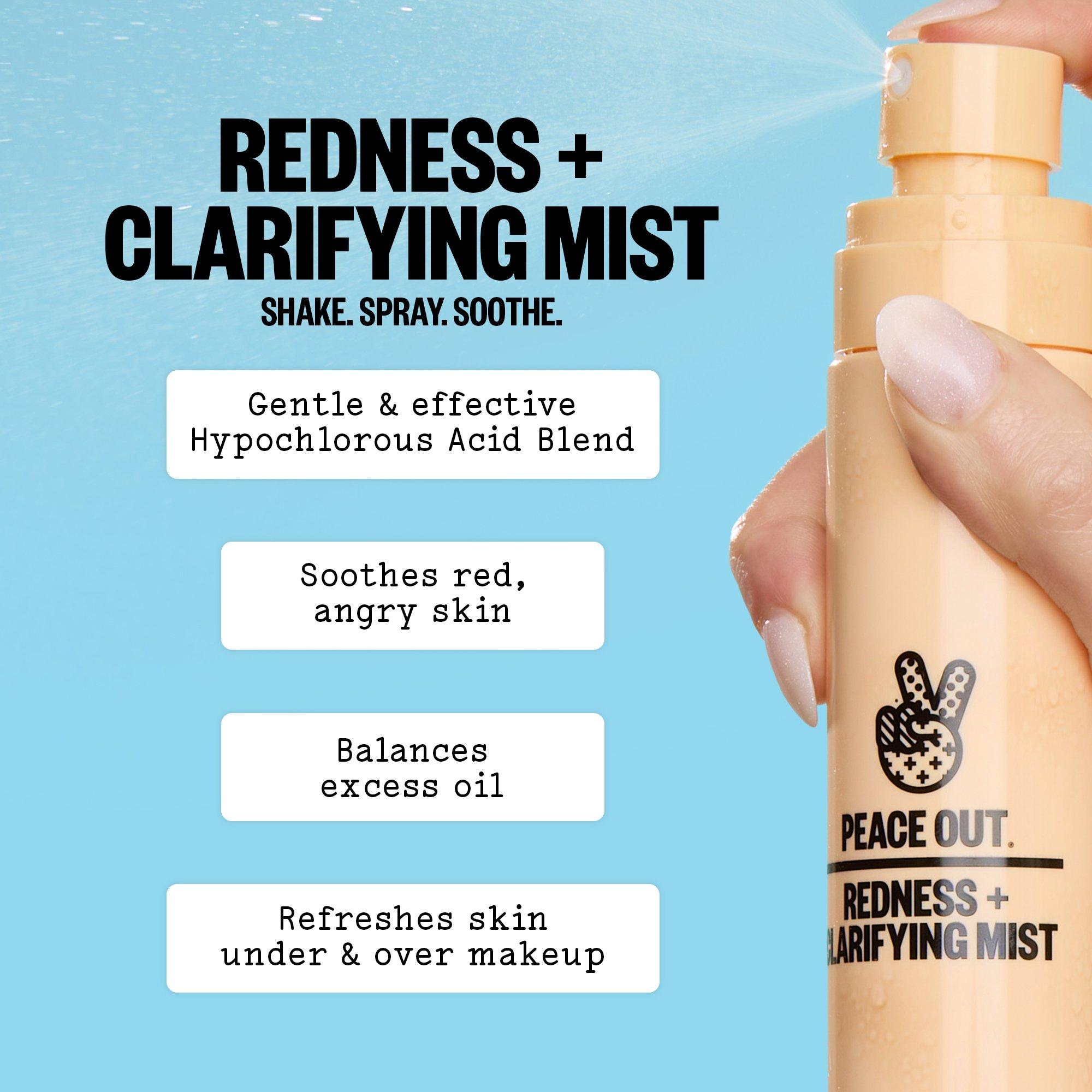 The Peace Out Redness Reducing + Clarifying Facial Mist is a gentle yet powerful mist that visibly soothes red, angry skin and helps minimize excess oil - all in one refreshing mist.