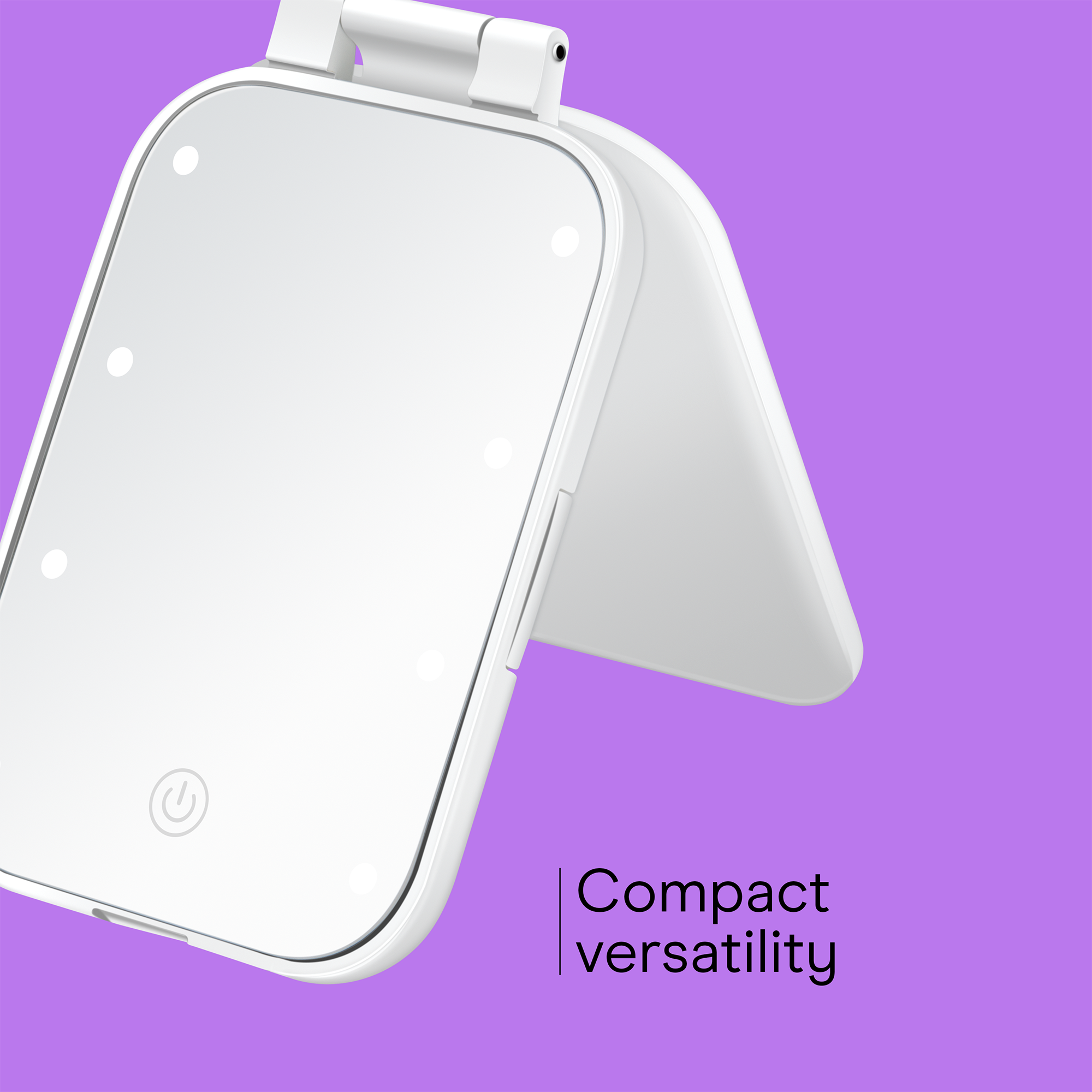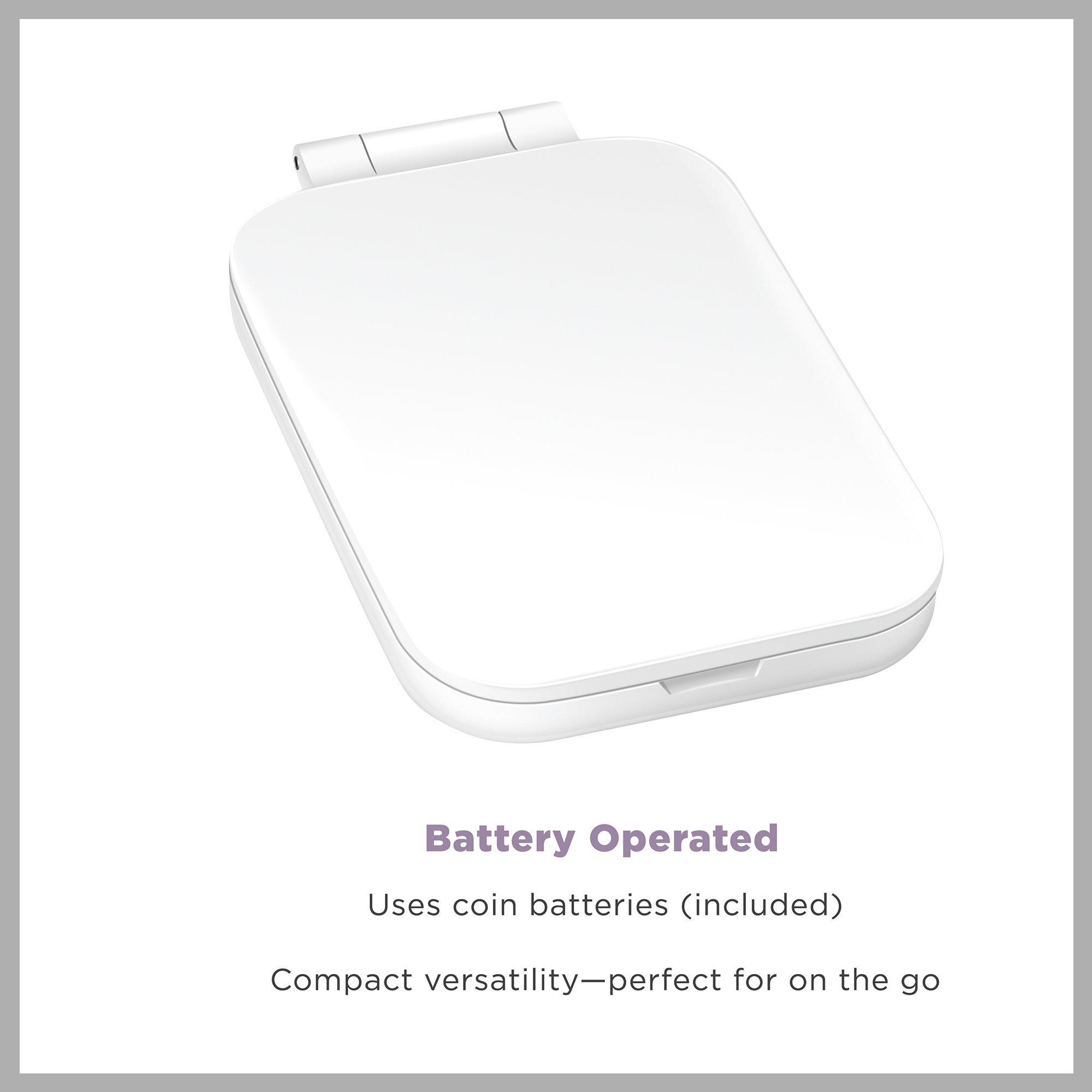 Battery-operated LED mirror with a compact design for touch-ups on the go. Fits in your purse so you can look your best anytime, anywhere.