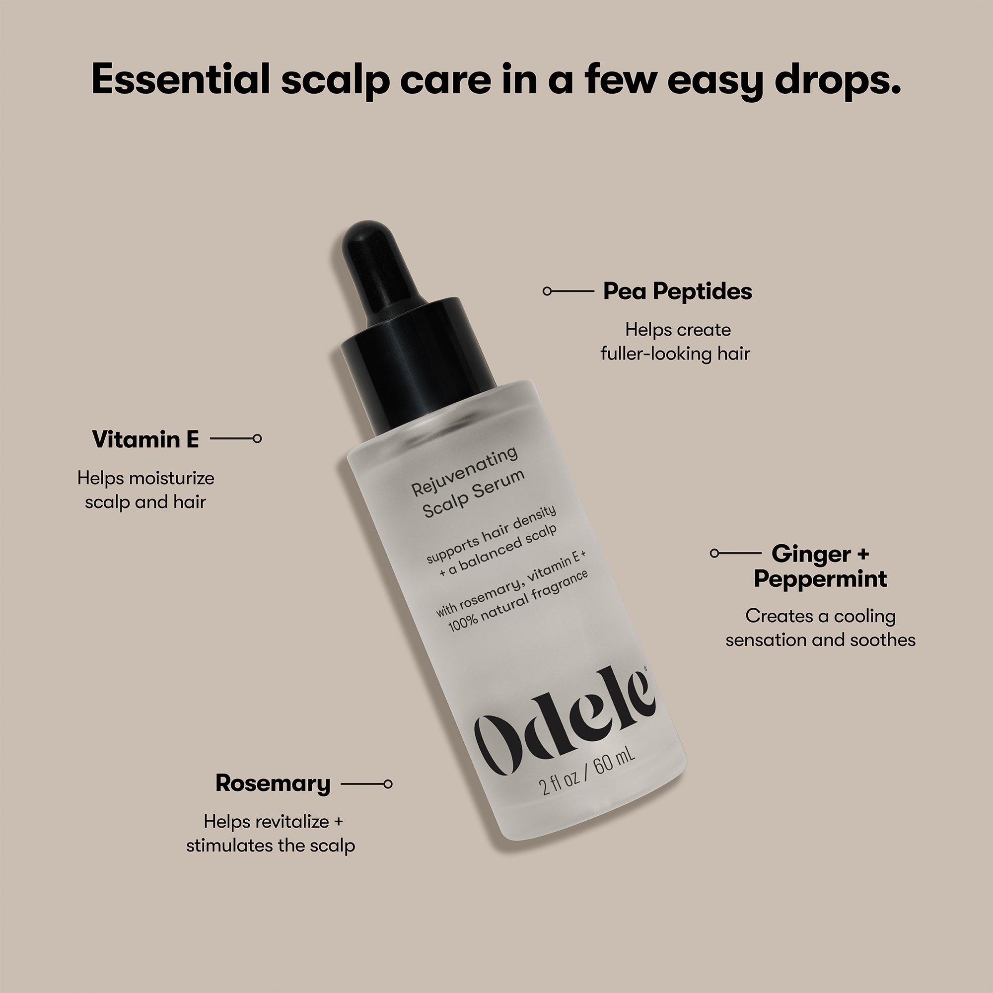Hair growth starts with a healthy scalp. Odele's Rejuvenating Scalp Serum utilizes clinically proven ingredients to soothe and stimulate the scalp without leaving hair greasy. Plant-based ingredients amplify hair density and promote healthier, thicker-looking hair.