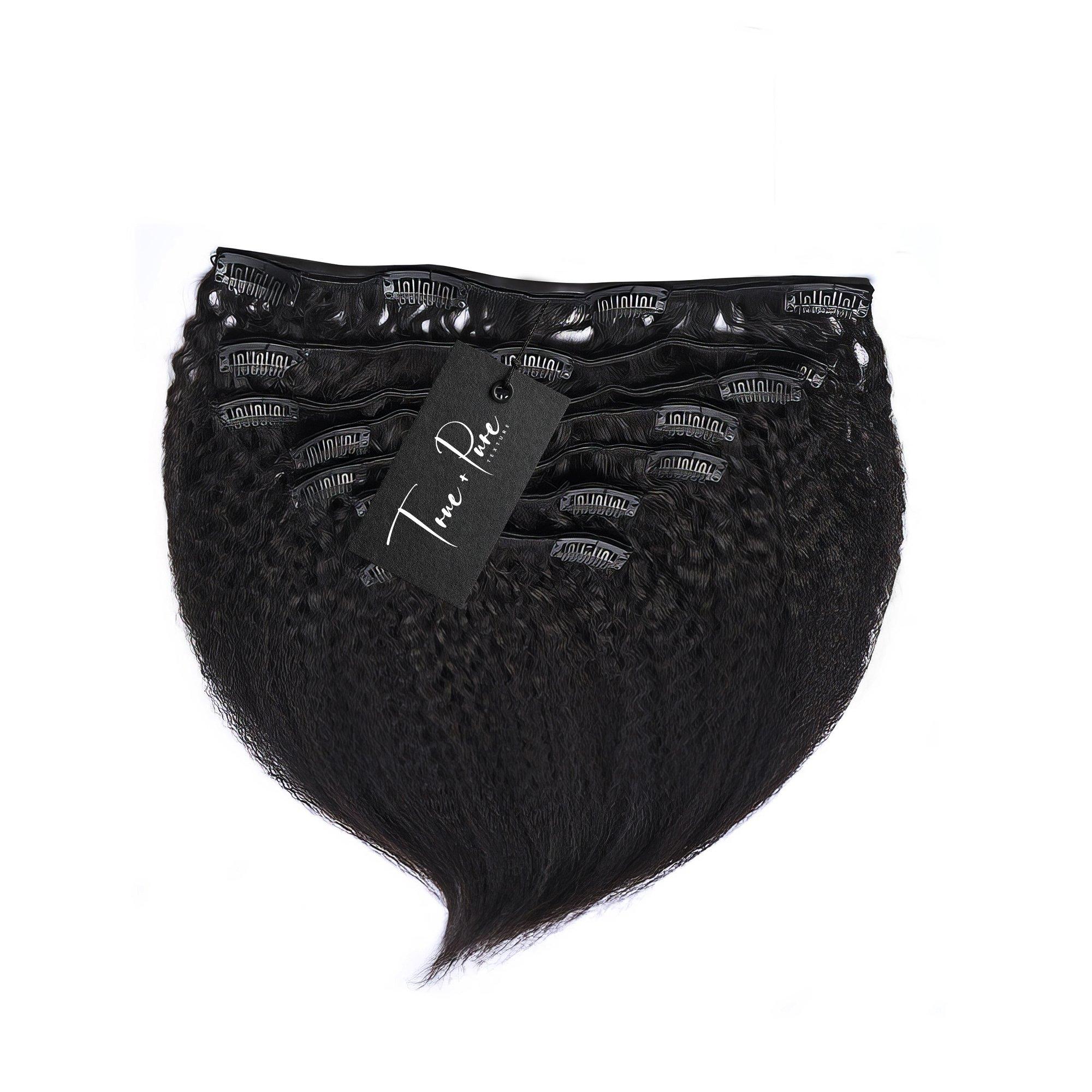 How to buy the True + Pure Texture Relaxed Natural Blowout Kinky Straight Human Hair Clip Ins Extensions from the USA?