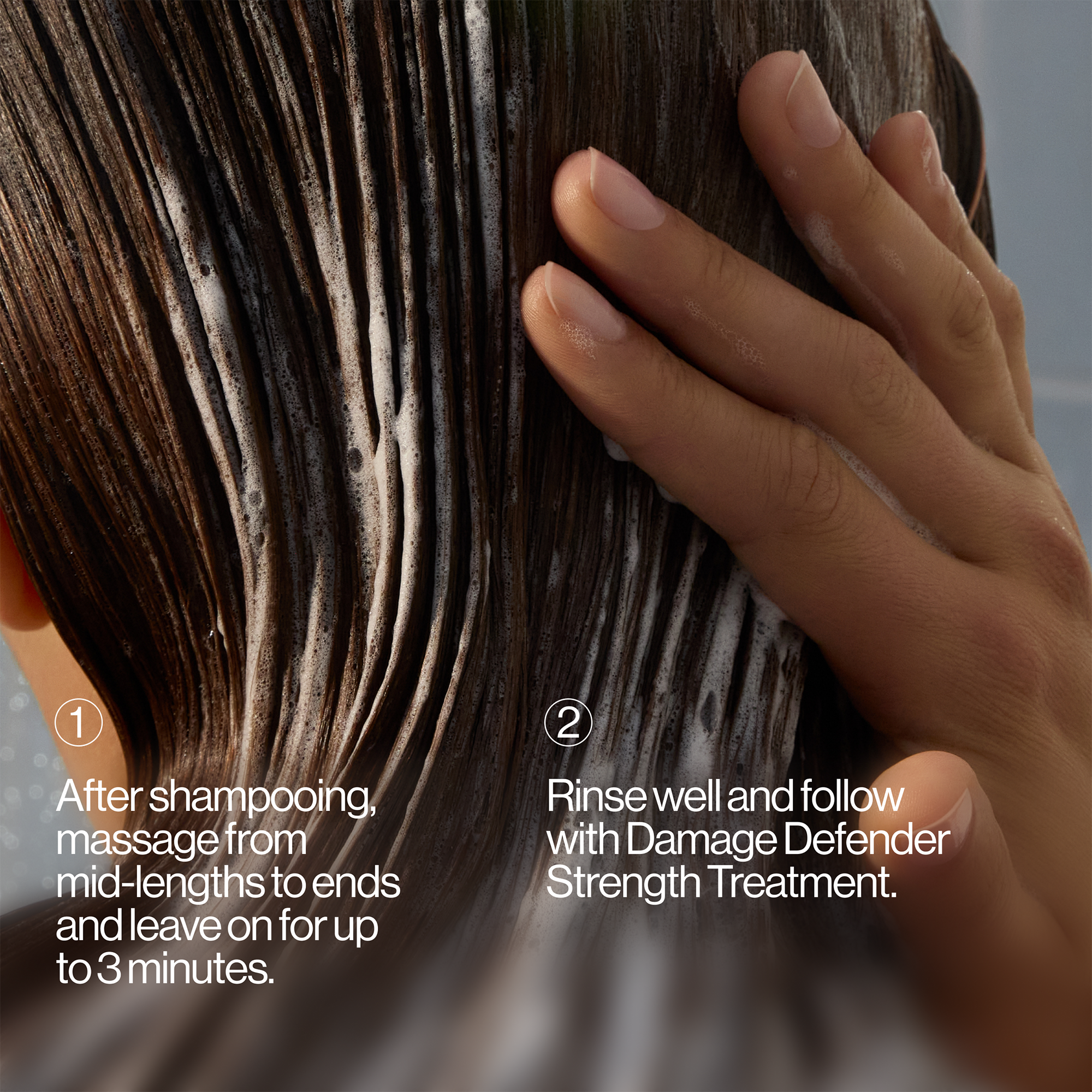 - After shampooing, massage from mid-lengths to ends.